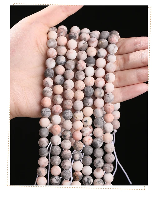 1 Strand Natural Frosted Matte Pink Zebra Jaspers Stone Bead Round Loose Spacer Beads For Jewelry Making Diy Bracelet Necklace