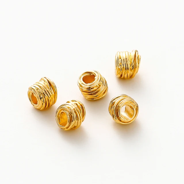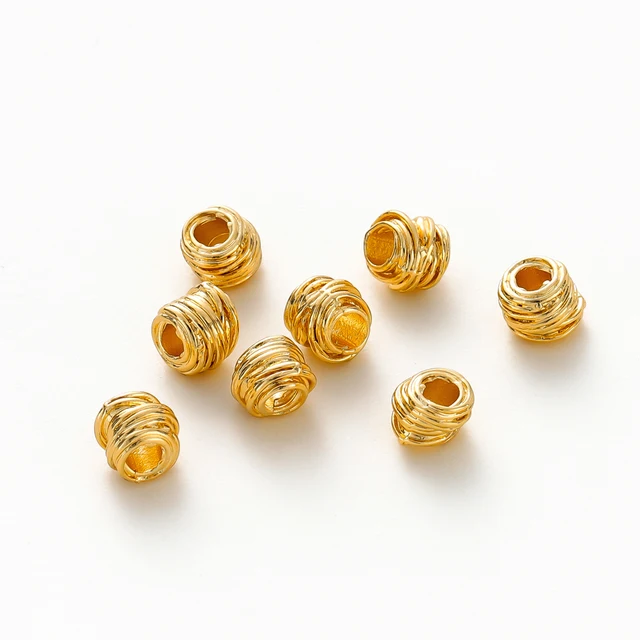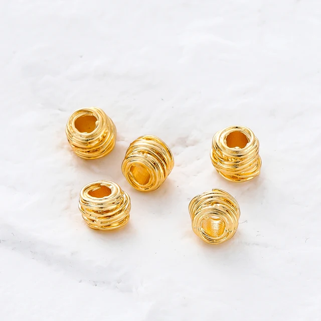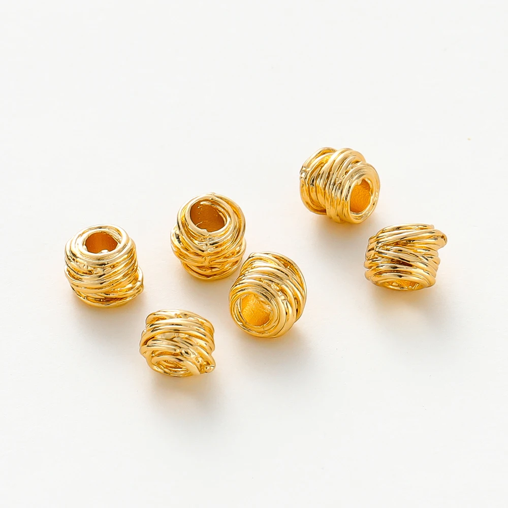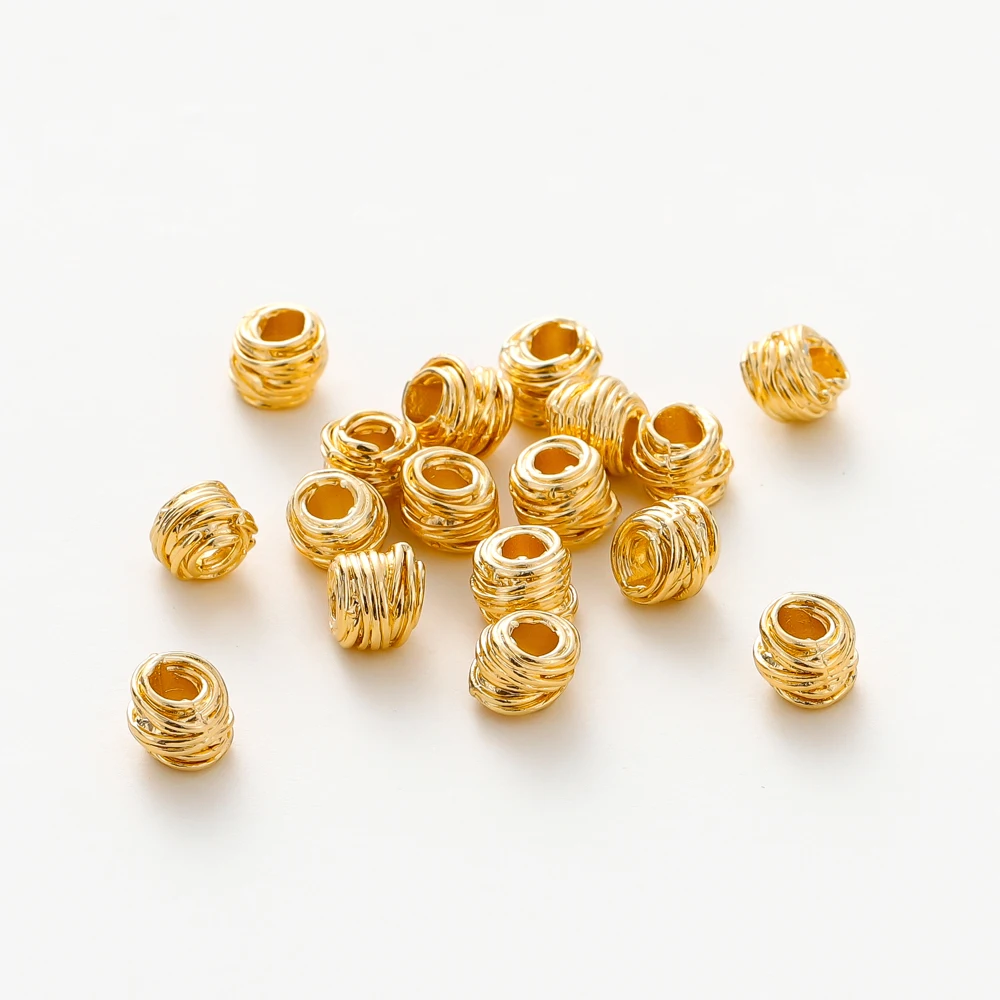 30pcs 5mm*6mm 18K Gold Plating Brass Irregular Beads High Quality Stripe Spacer Beads For Fashion Jewelry Making Supplies