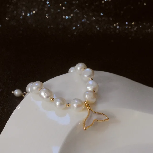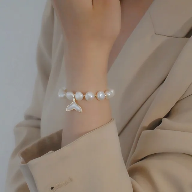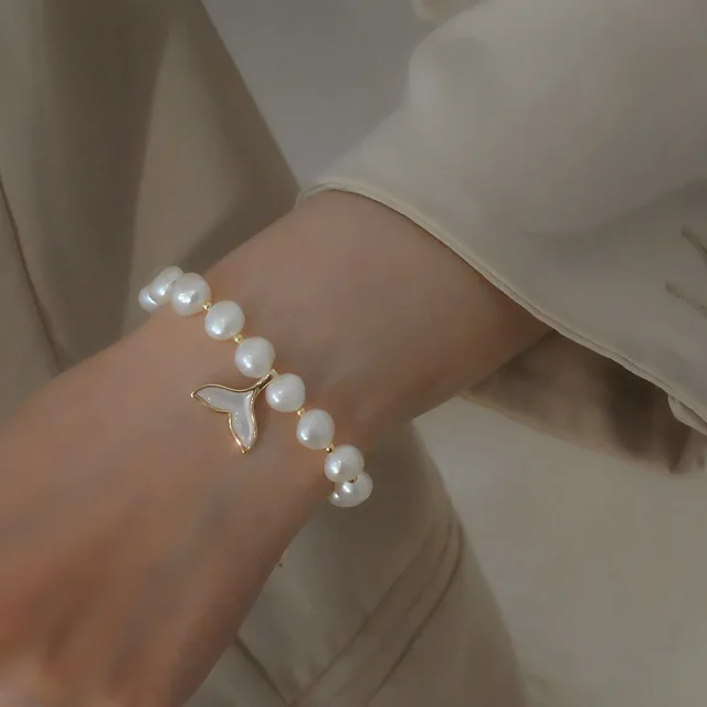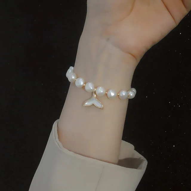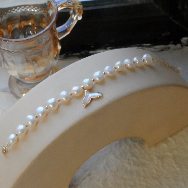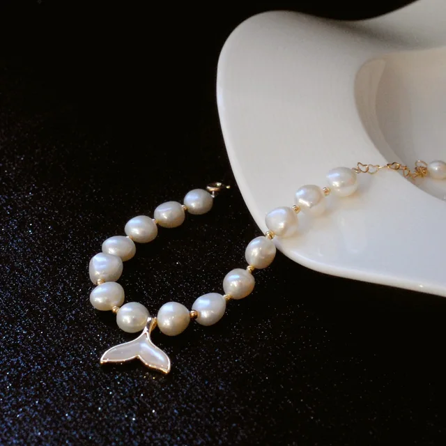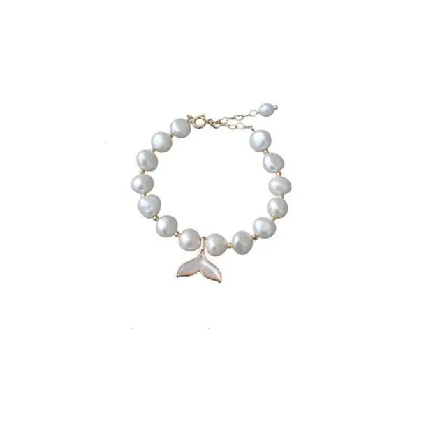 100% Baroque Freshwater Pearl Fish Tail 14K Gold Filled Ladies Charm Bracelet Jewelry For Women Birthday Gifts