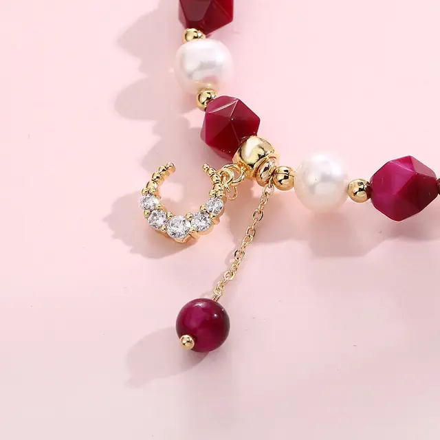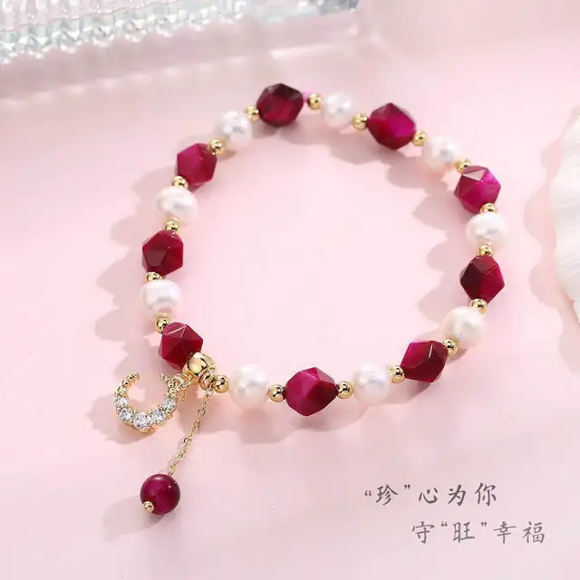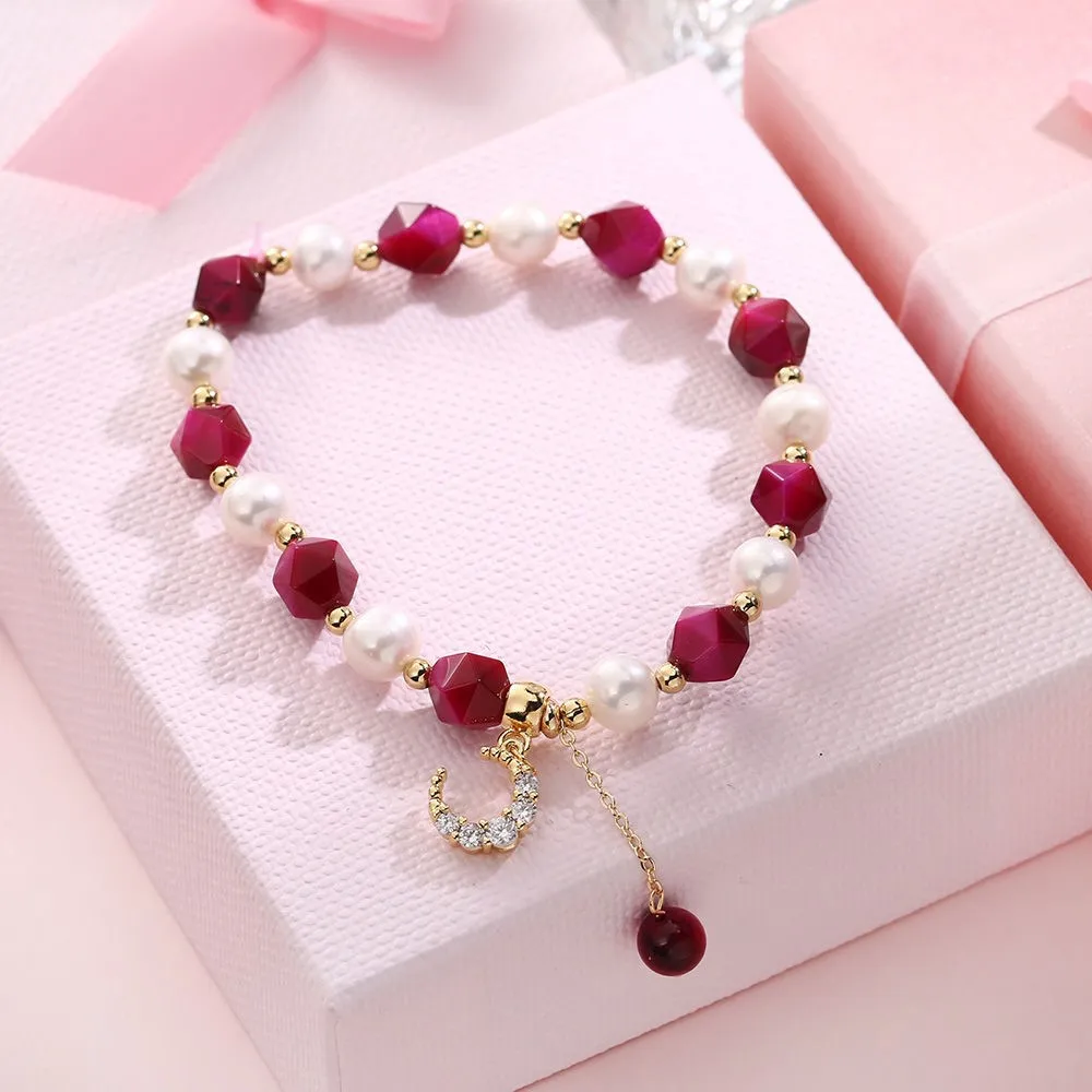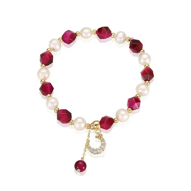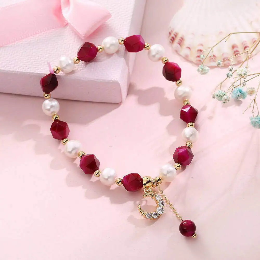 100% Natural Baroque Freshwater Pearl & Rose Red Tiger Eye Bracelet Jewelry For Women Birthday Gifts Hand Accessories