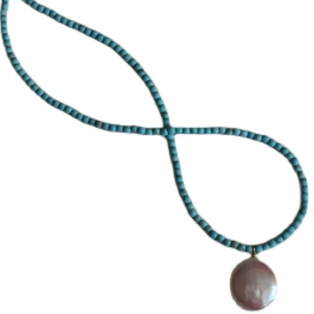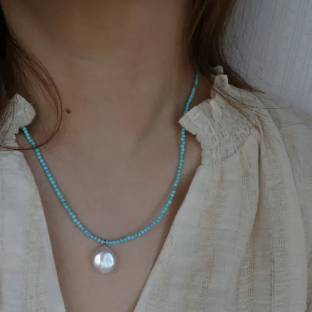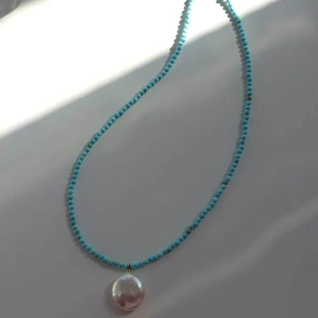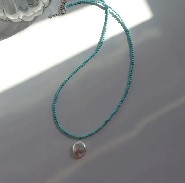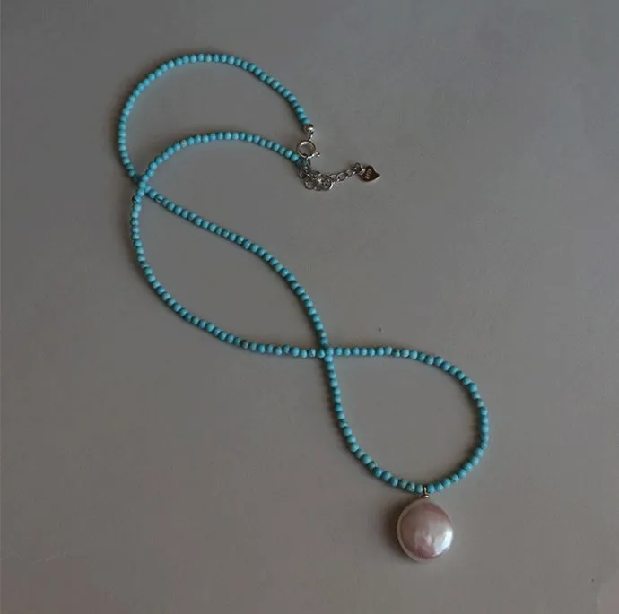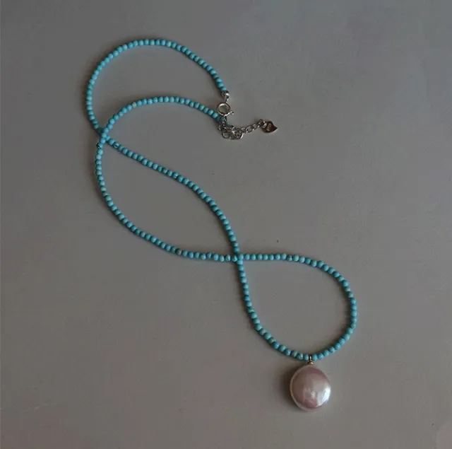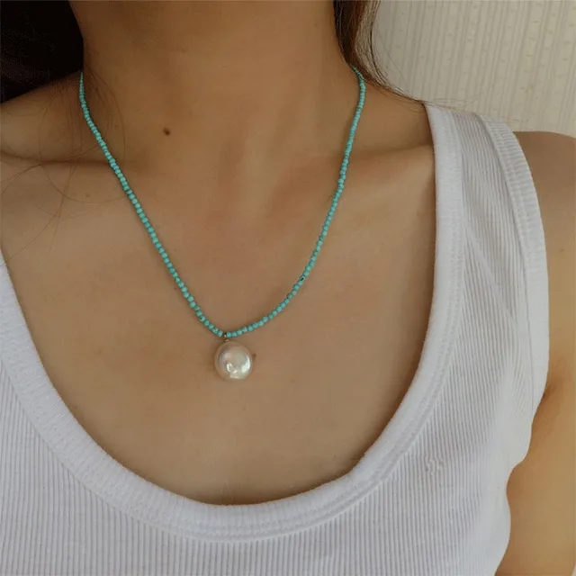 100% Natural Baroque Freshwater Pearl & Turquoise Stone Female Beads Chain Necklace Jewelry For Women New Year Gifts