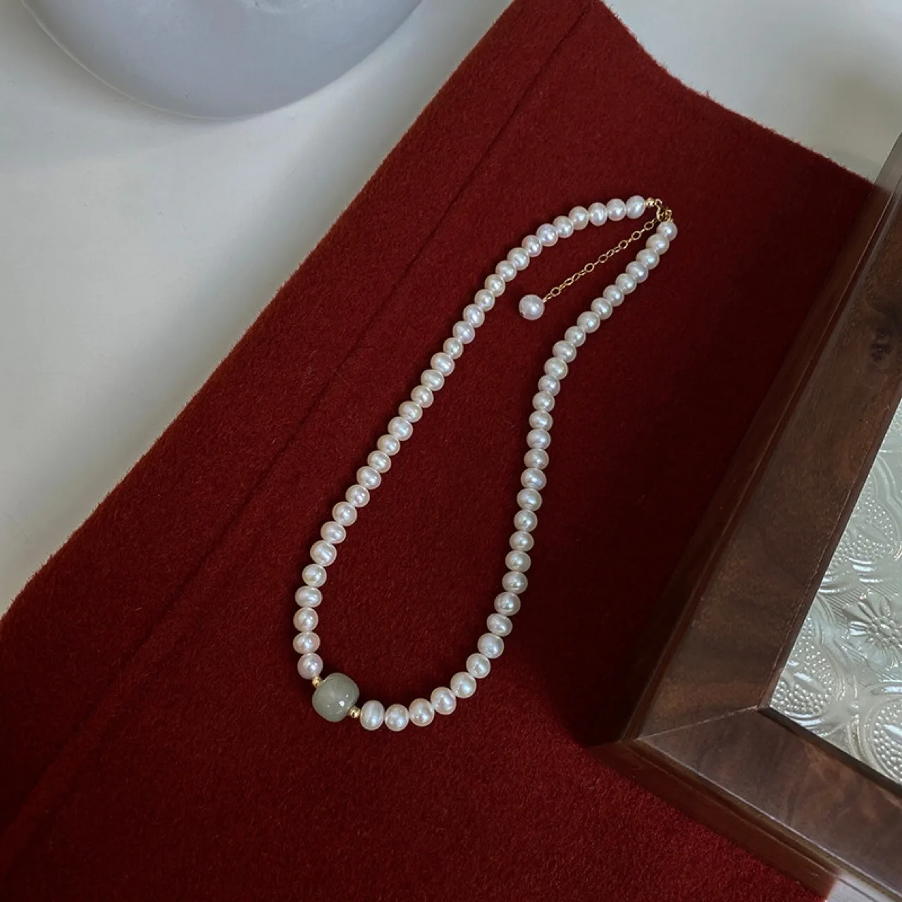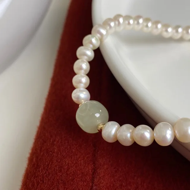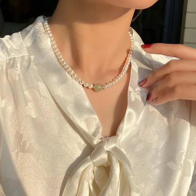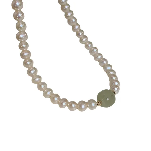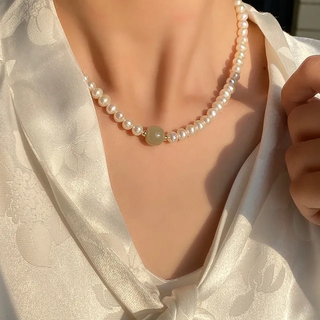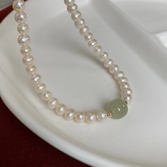 100% Natural Bright Freshwater Pearl & Nephrite Jade Stone 14K Gold Filled Female Necklace Jewelry For Women Short Chains Gifts