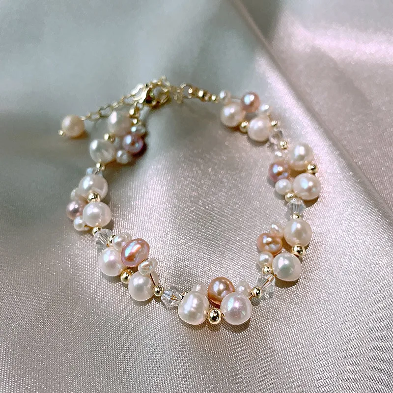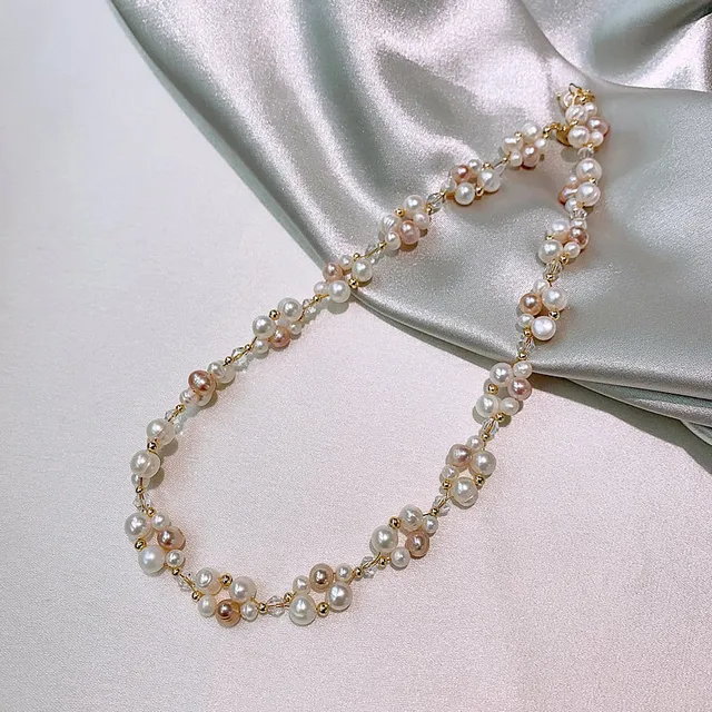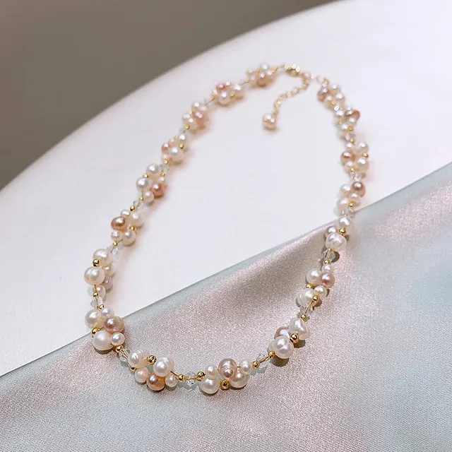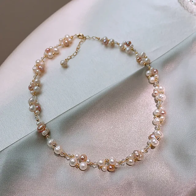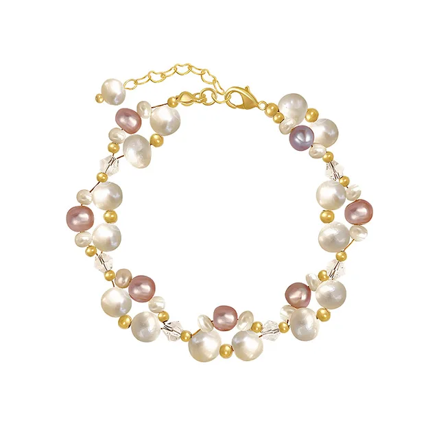 100% Natural Freshwater Pearl & Crystal 14K Gold Filled Female Jewelry Sets For Women Necklace Bracelet Wholesale Gifts No Fade