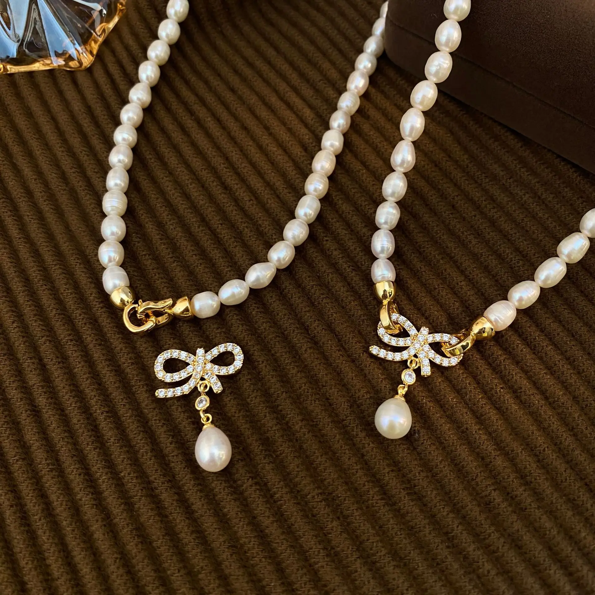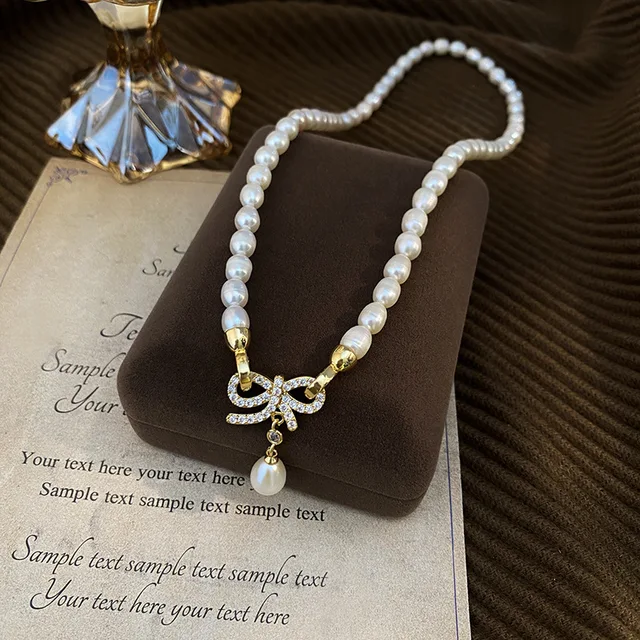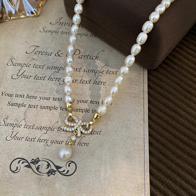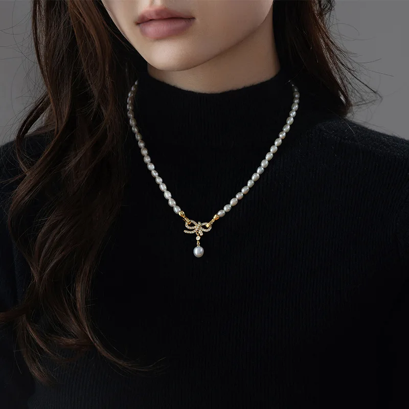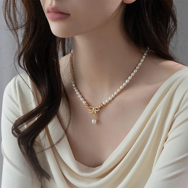 100% Natural Freshwater Pearl Elegant Bowknot 14K Gold Filled Female Short Chain Necklace Jewelry For Women Wedding Gifts