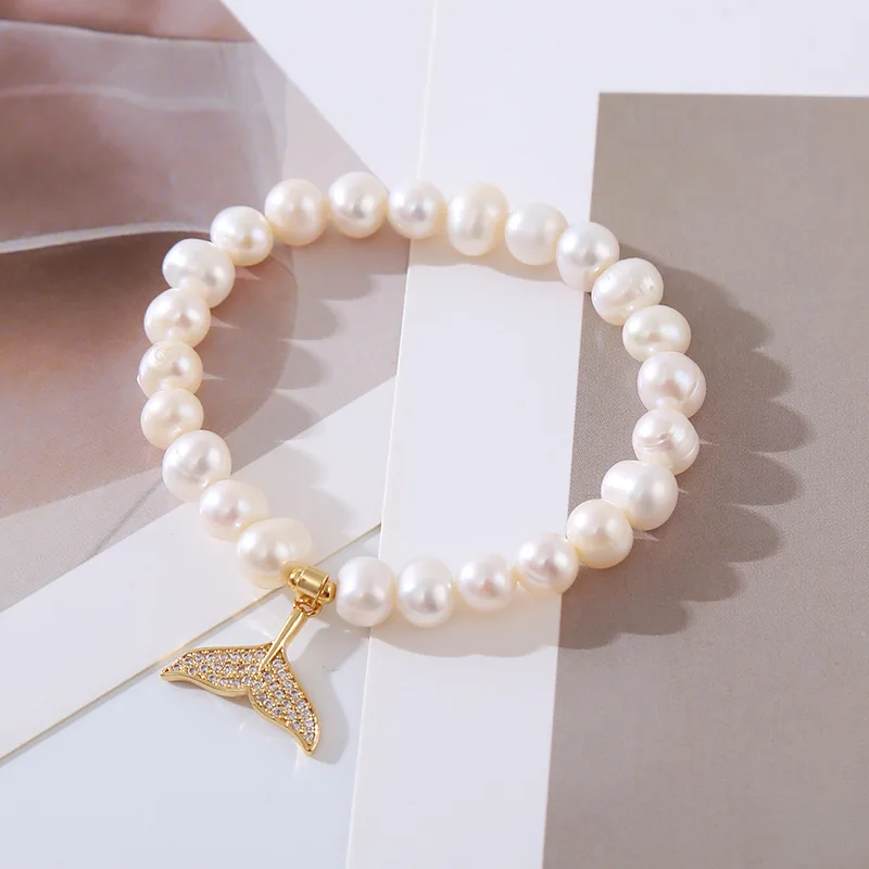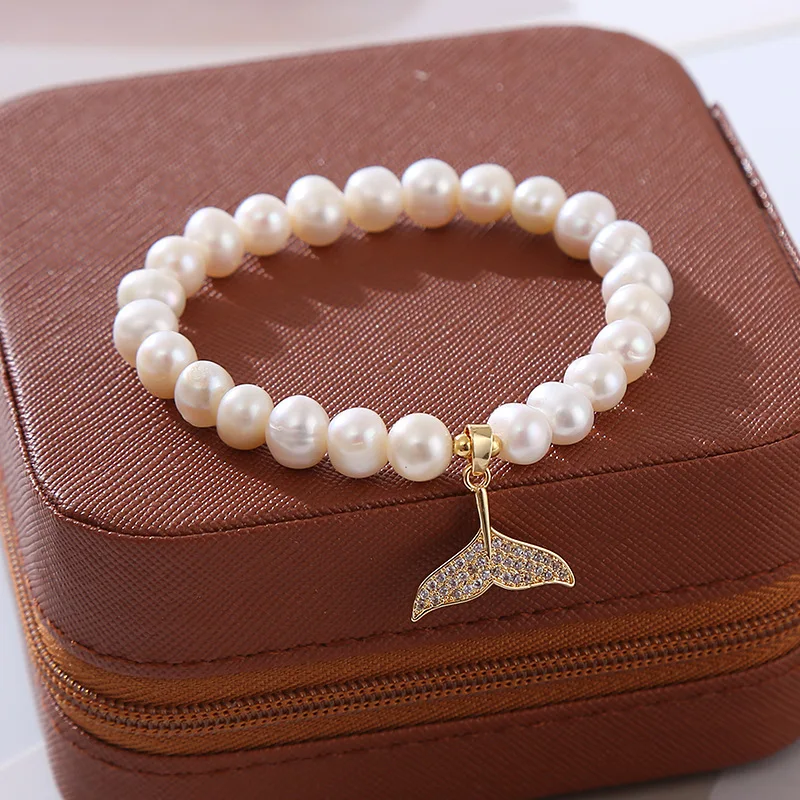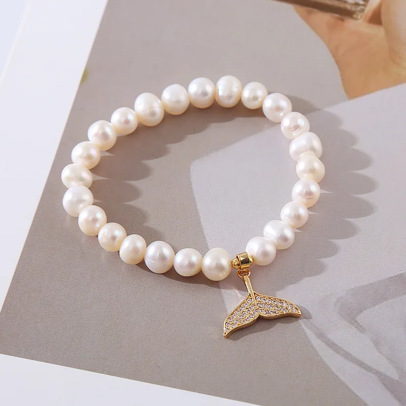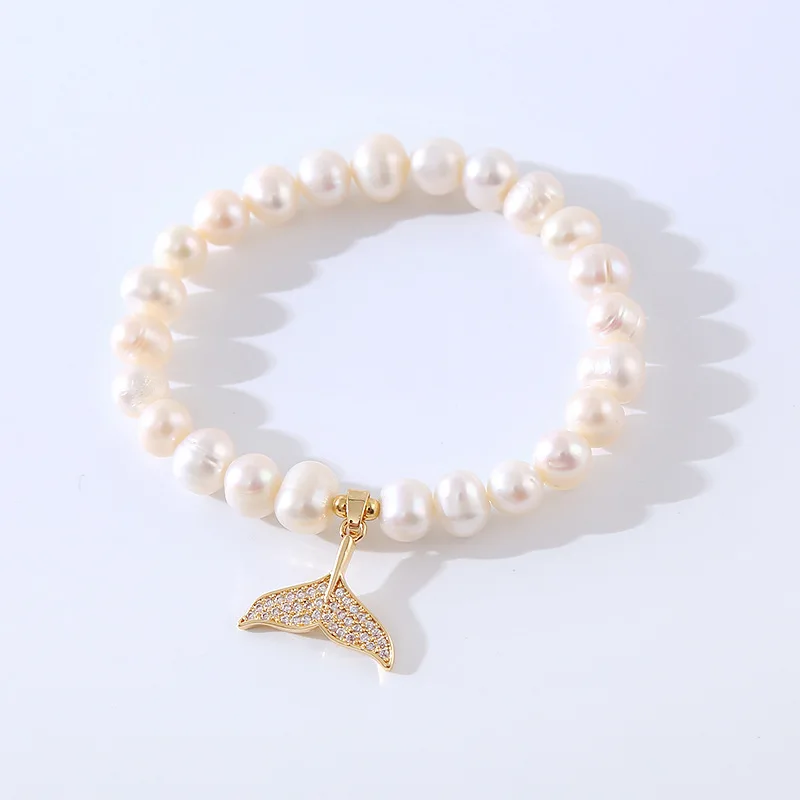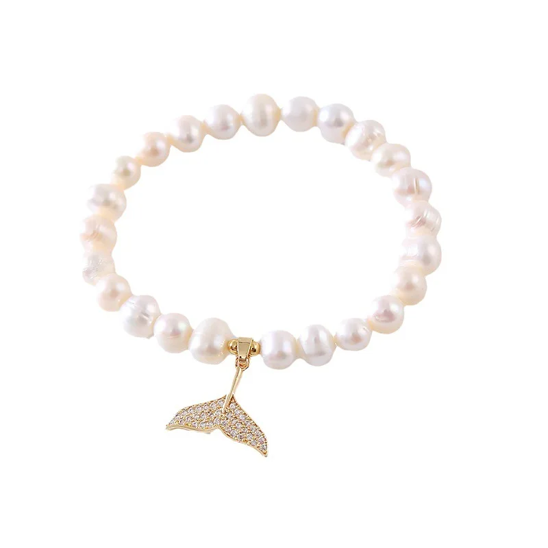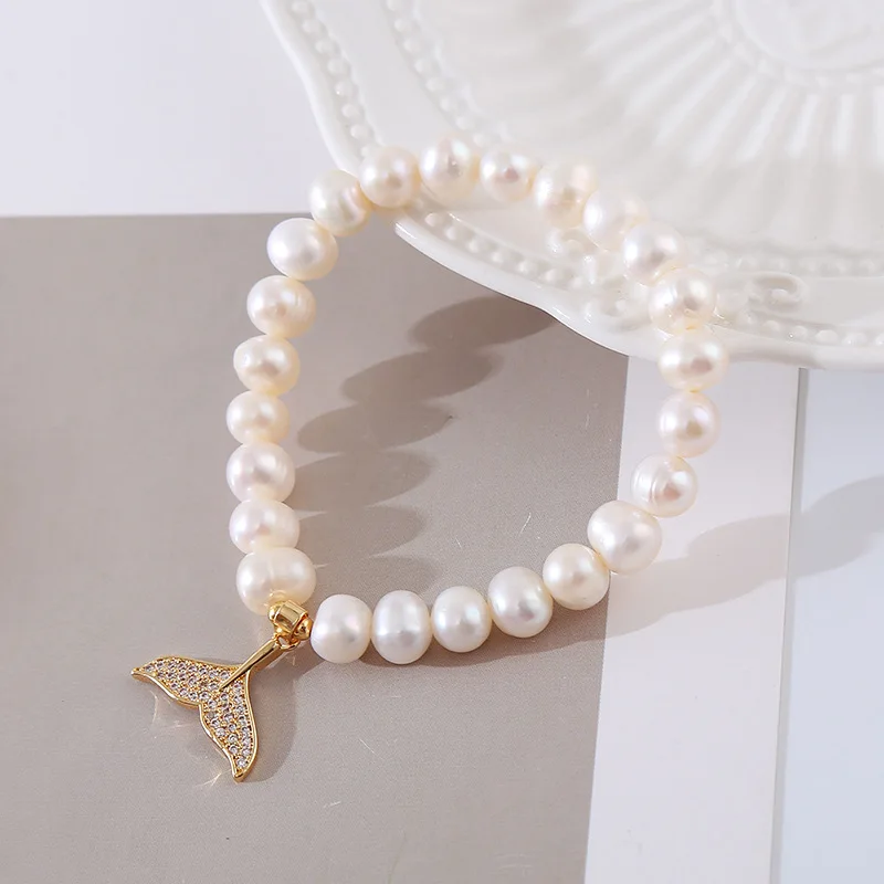100% Natural Freshwater Pearl Elegant Fish Tail Design 14K Gold Filled Female Bracelet Promotion Jewelry For Women Birthday Gift