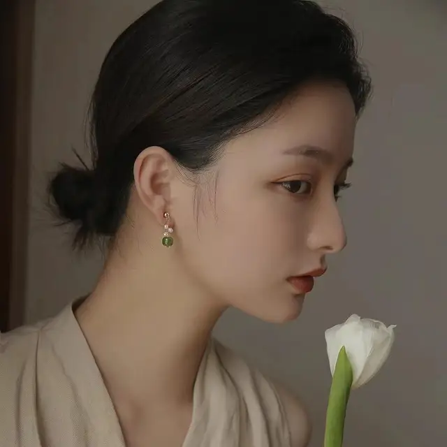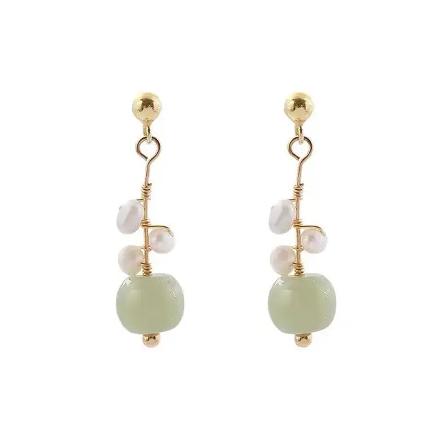 100% Natural Freshwater Pearl & Nephrite Jade Stone 14K Gold Filled Ladies Tassels Stud Earrings Not Allergic For Women Gifts