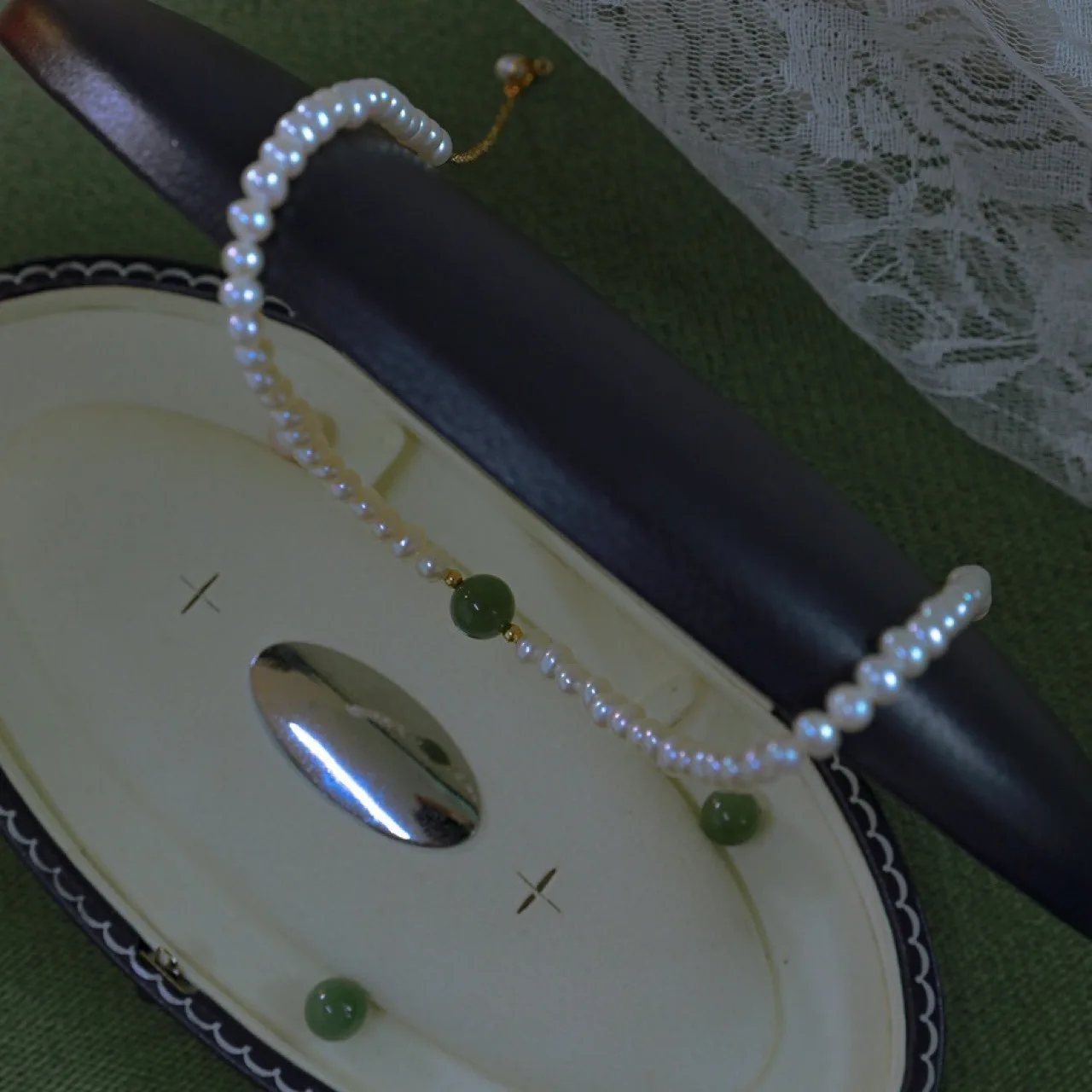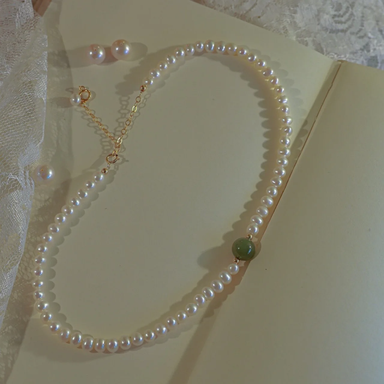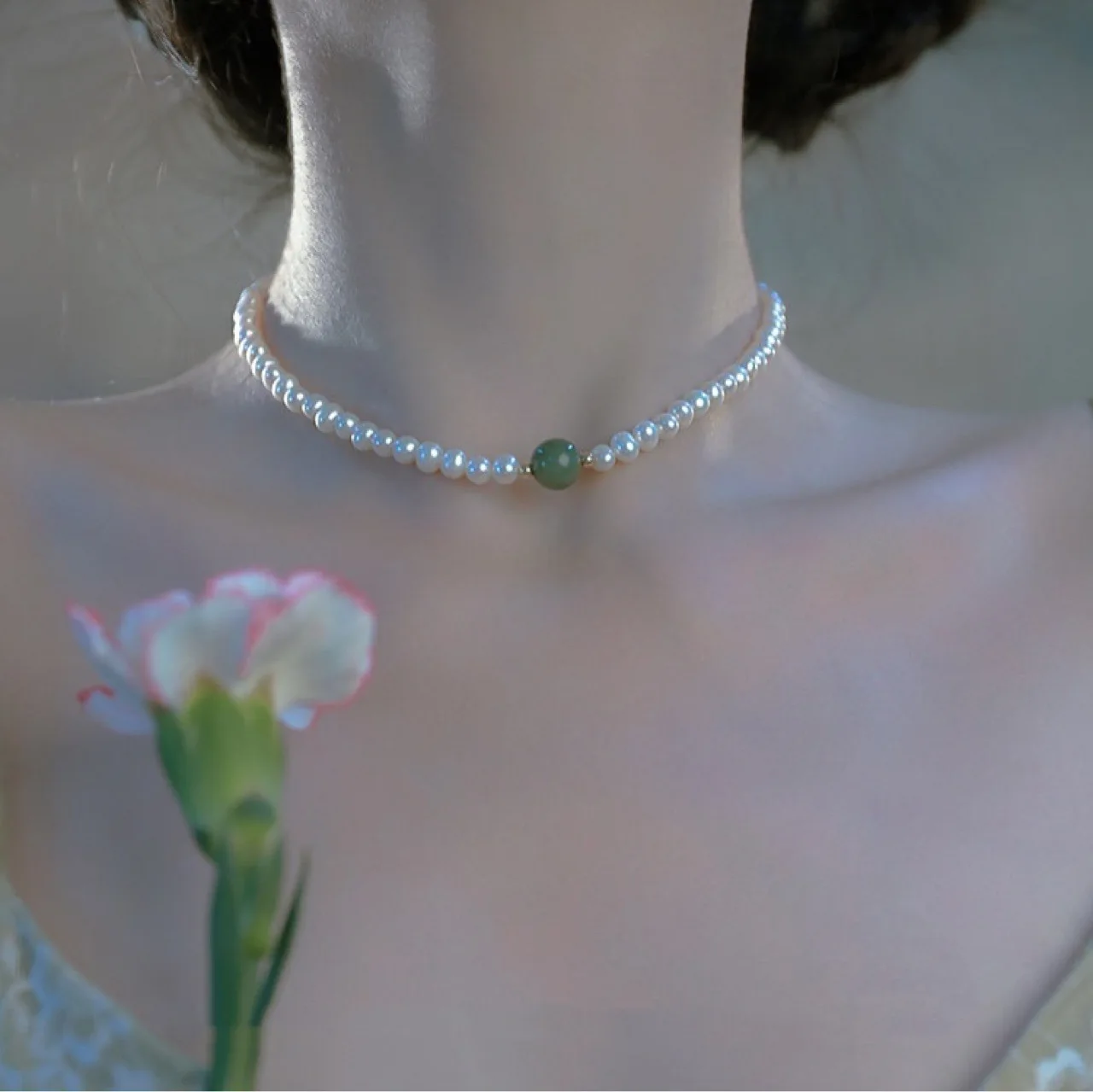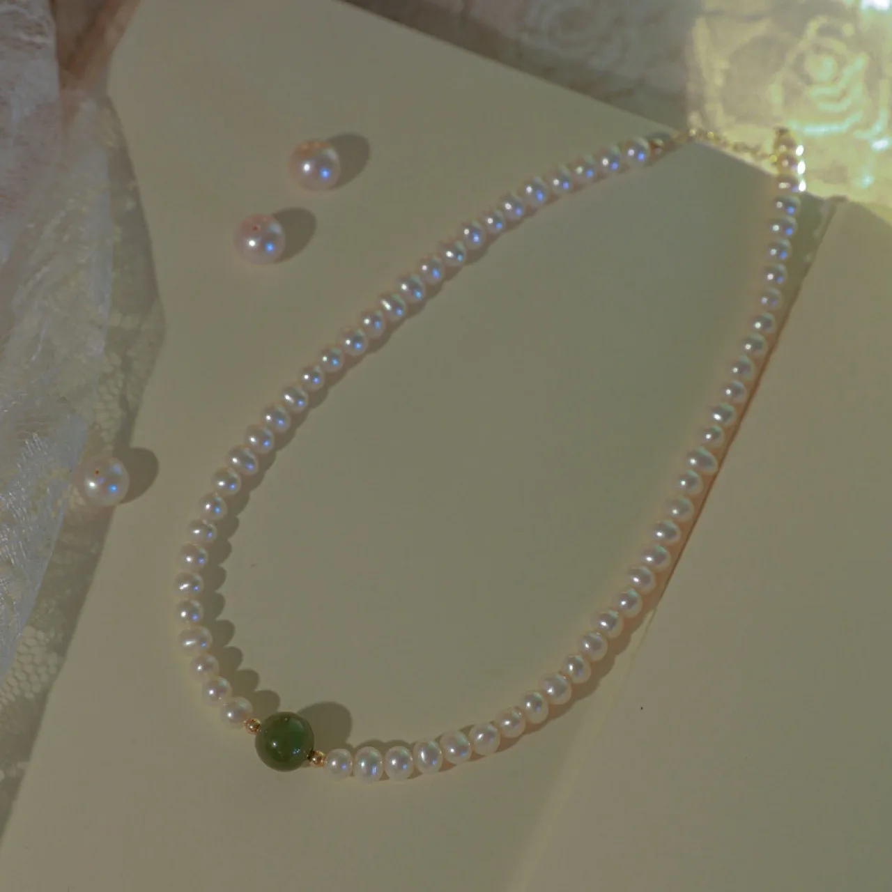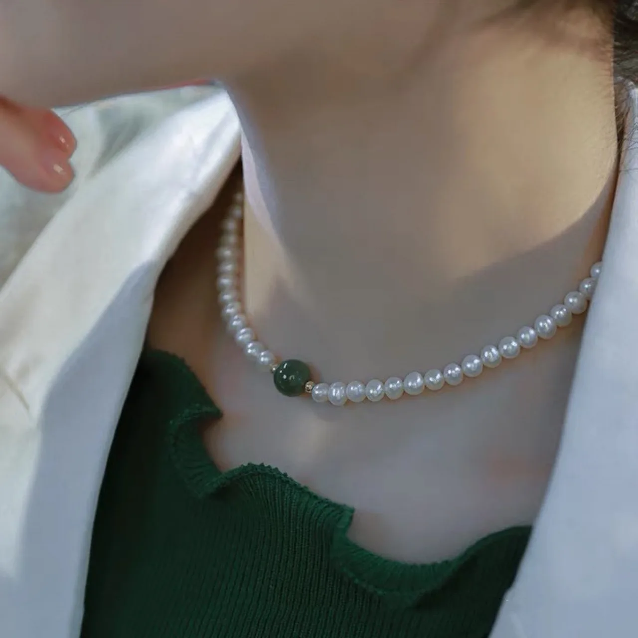 100% Natural Jade Stone & Freshwater Pearl 14K Gold Filled Female Necklace Jewelry For Women Short Chains Birthday Gifts
