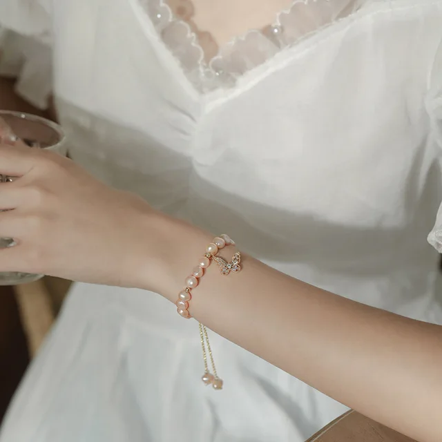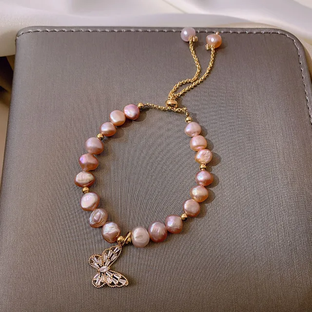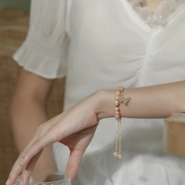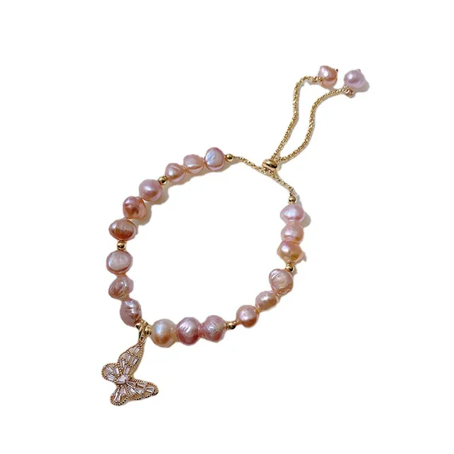 100% Natural Pink Freshwater Pearl Trendy Butterfly 14K Gold Filled Ladies Charm Bracelet Jewelry For Women Gifts Cheap