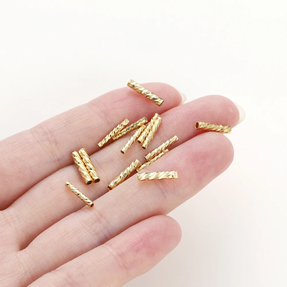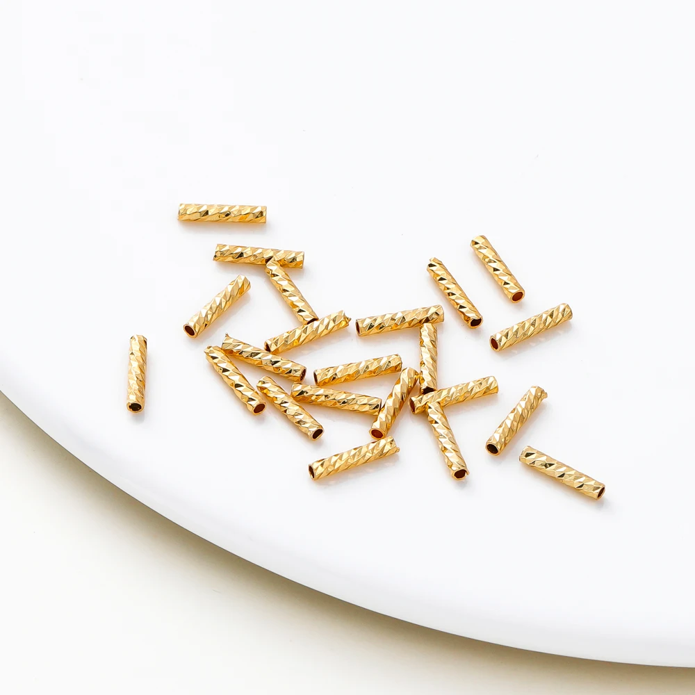 100pcs 7MM 10MM 14K 18K Gold Plated Brass Straight Tube for Bracelet Making StripeTubes Jewelry Supplies Diy Accessories