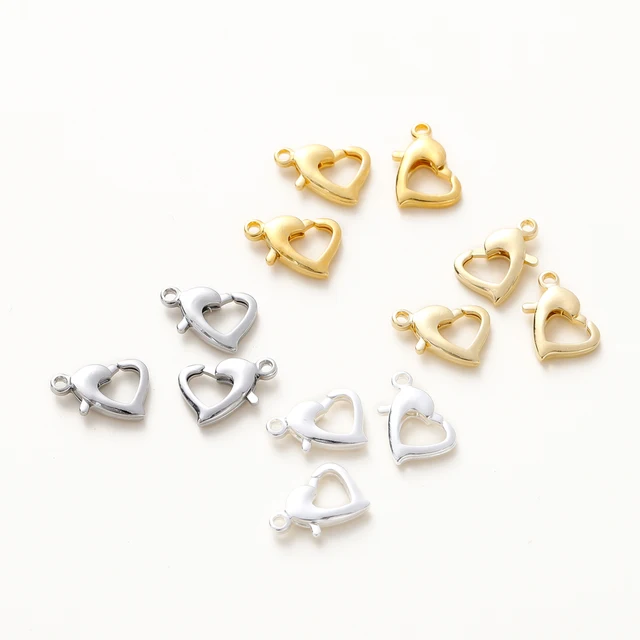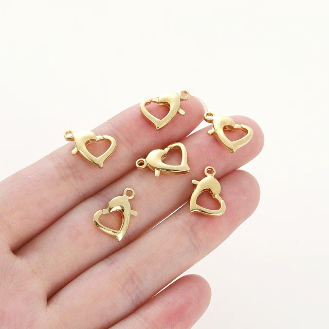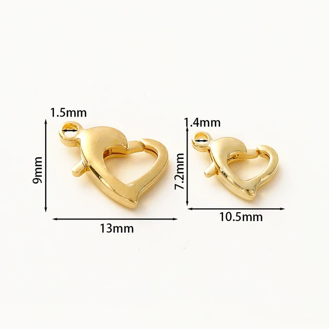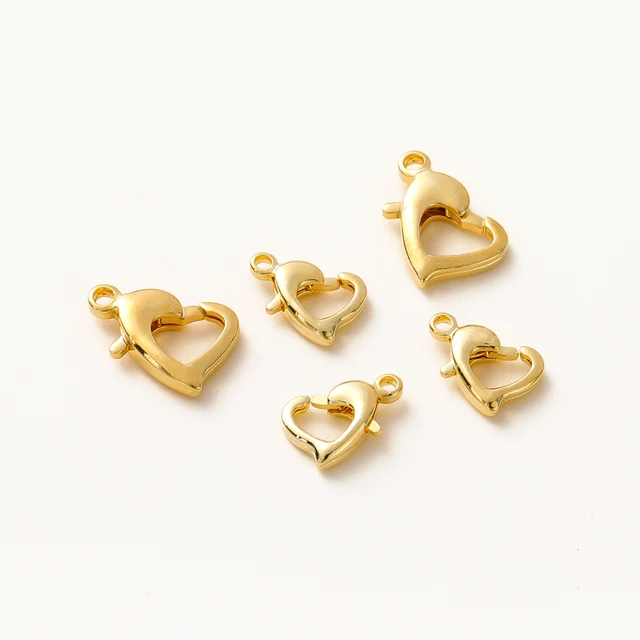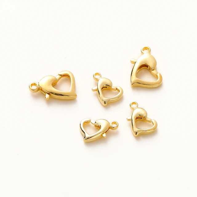 10pcs/lot 14K 18K Gold Plated Heart Shape Lobster Clasps 10mm/13mm Heart Locks Clasp For Bracelet Necklace Jewelry Making