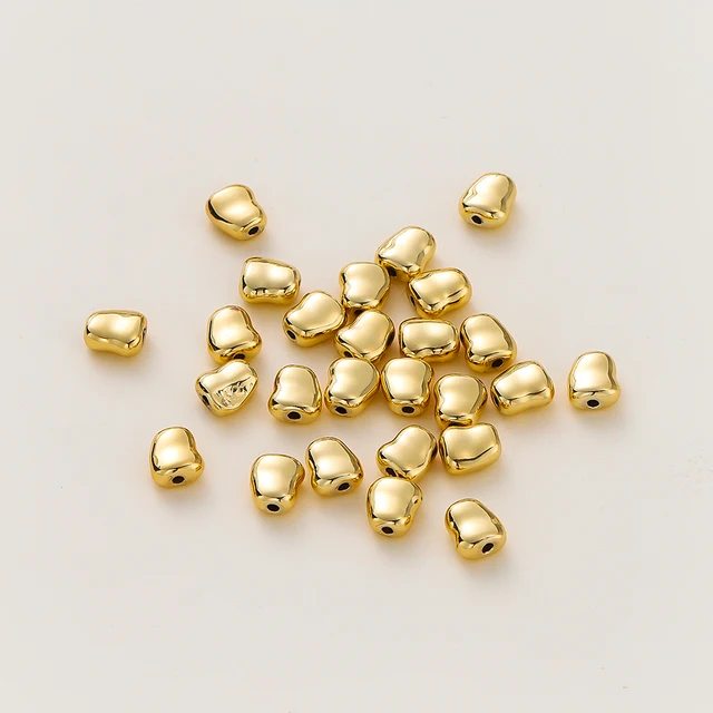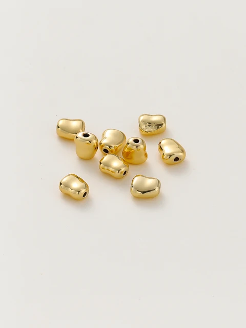 10pcs/lot 14K 18K Gold Plated Stone Shape Oval Beads Necklace Loose Spacer Beads For DIY Jewelry Making Finding Accessories