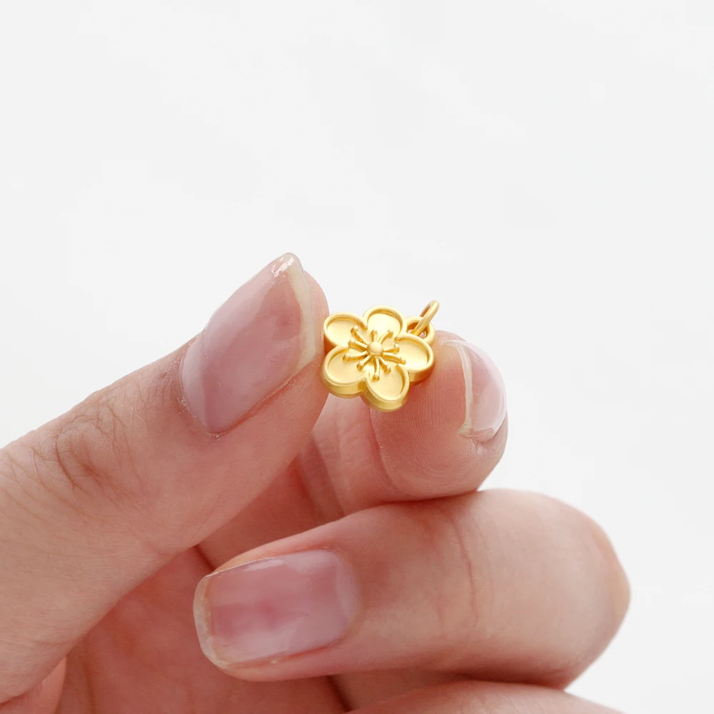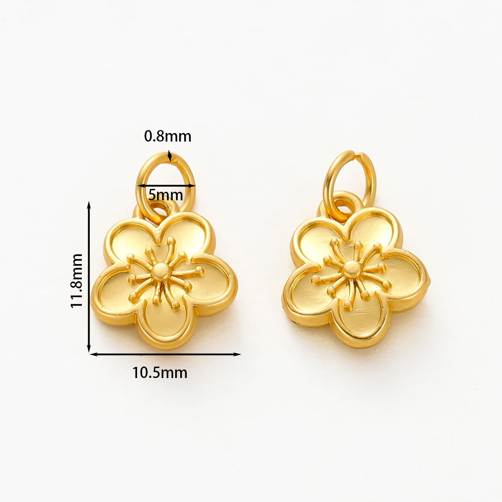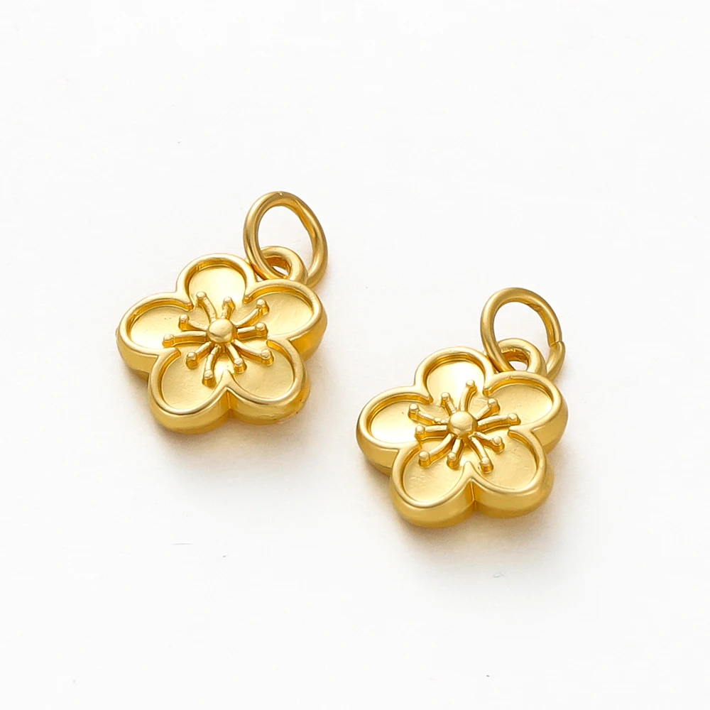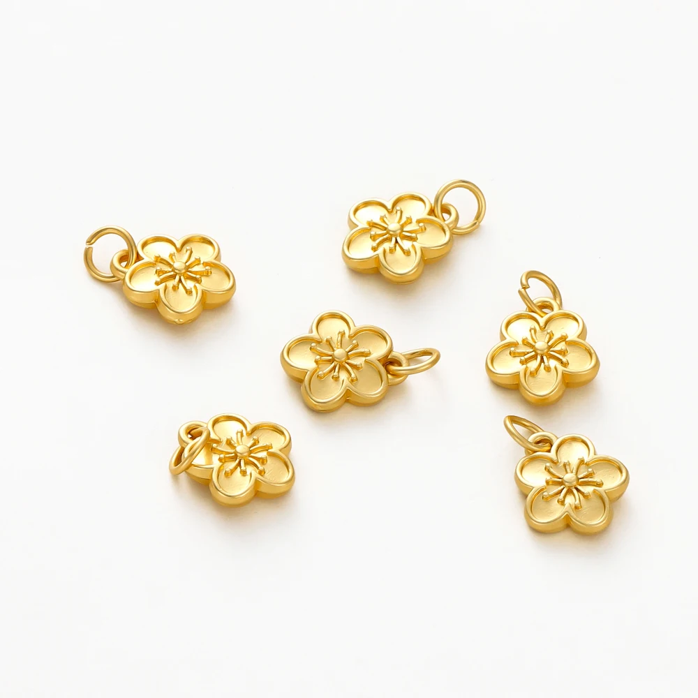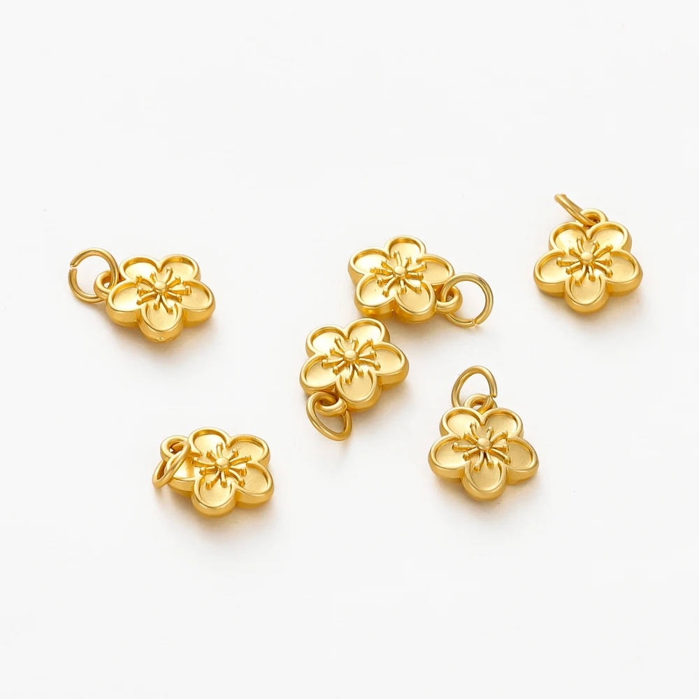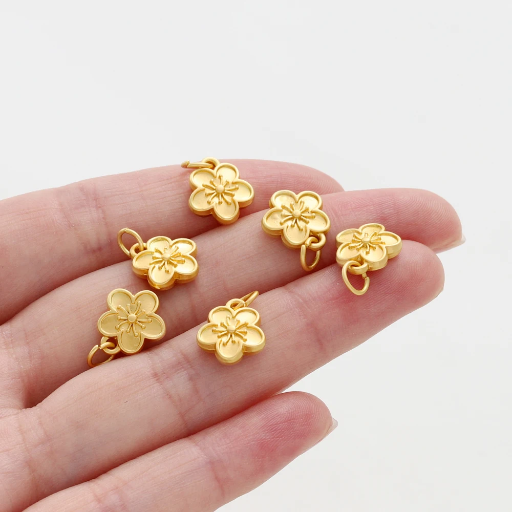 10pcs/lot 18K Gold Color Plated Brass Peach Blossom Pendant Necklace Bracelet Jewelry Making Supply Gold Flower Beads Material