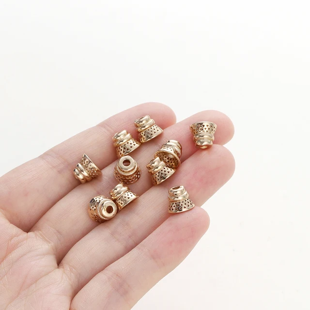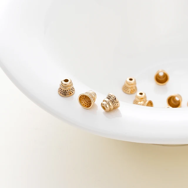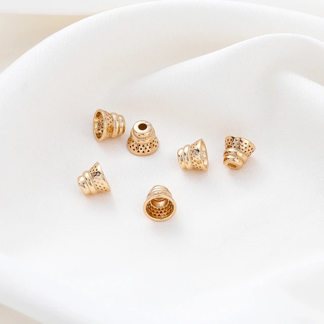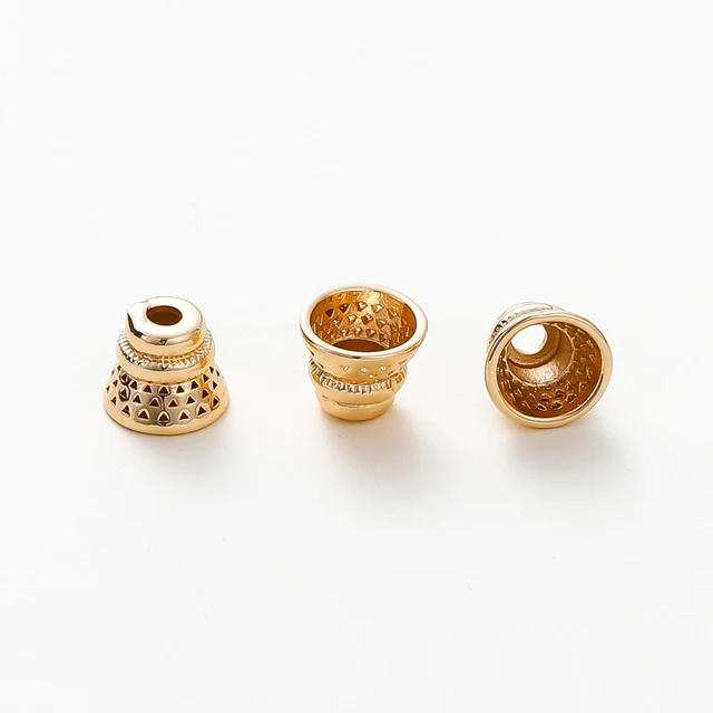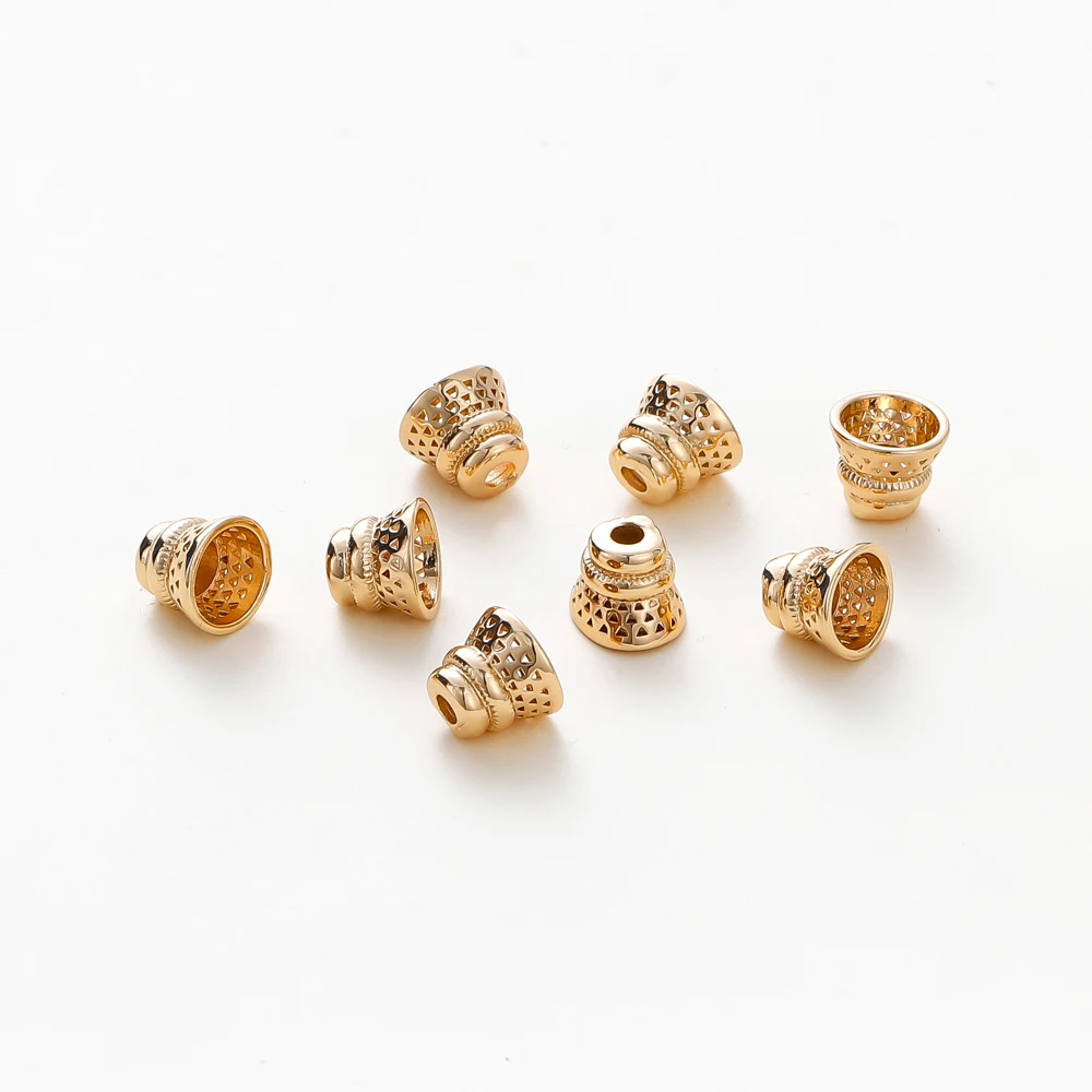 10PCS/lot 6.5*8MM 18K Gold Plated Brass Beads Caps Tassel Caps Bracelet Jewelry Making Supplies DIY Findings Accessories