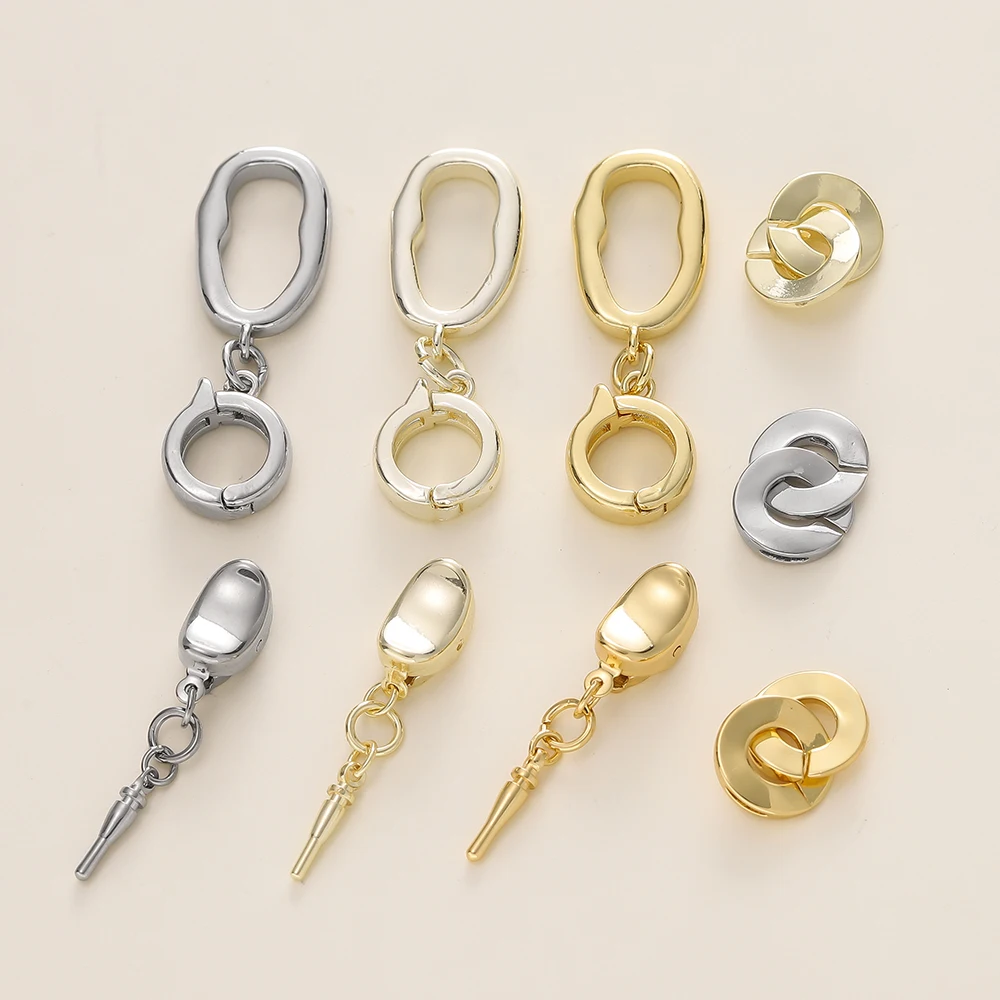 3pcs/lot 14/18K Gold Color Plated Metal Copper Necklace Clasp Connectors for DIY Jewelry Making Necklace Bracelet Accessories