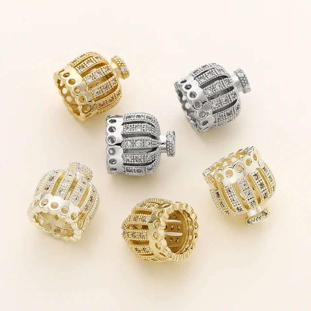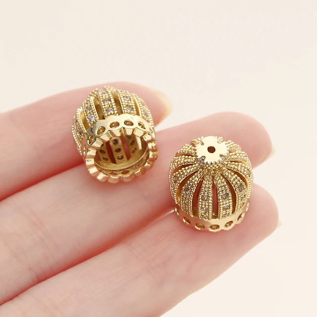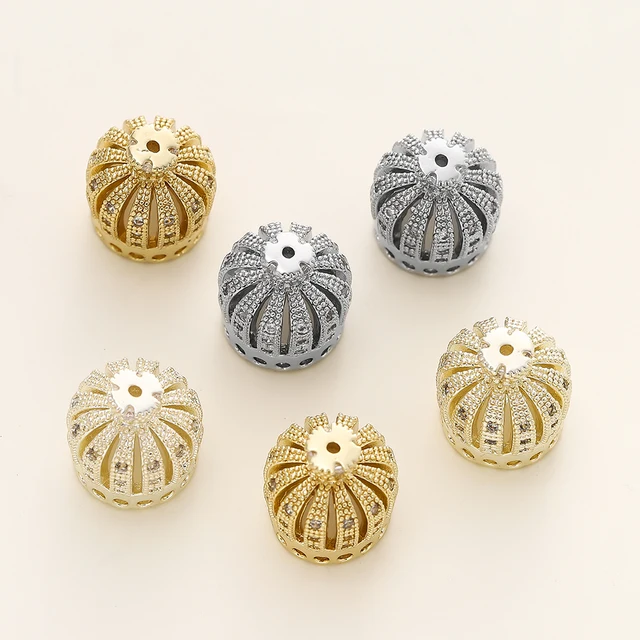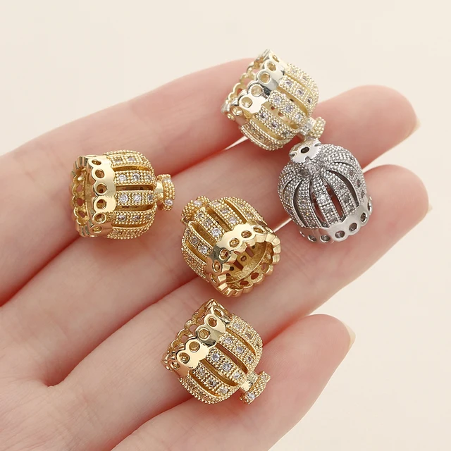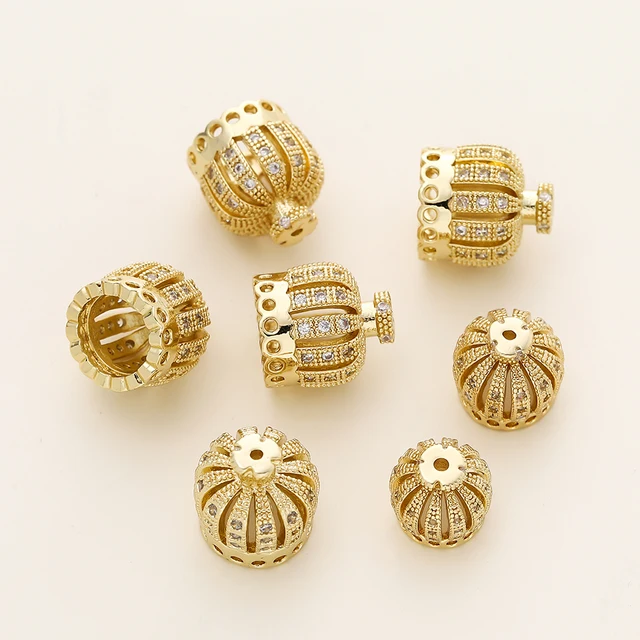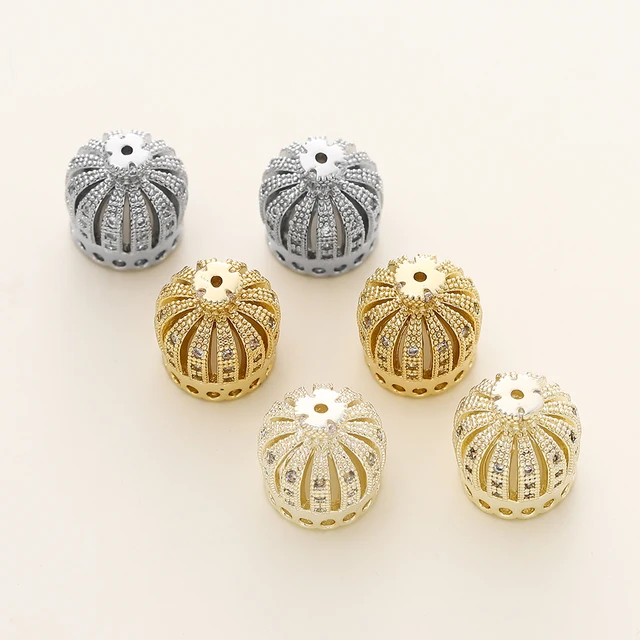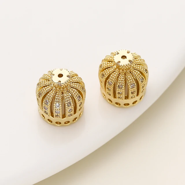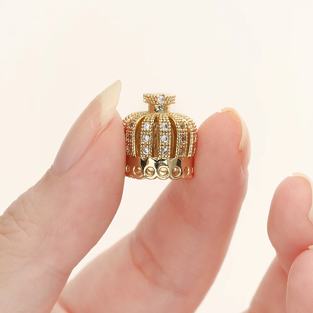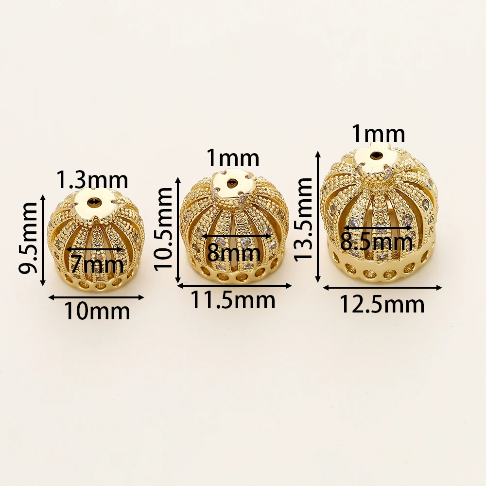 4pcs/lot 14/18K Gold Color Plated Large Flower Bead Caps with Zircon Crown Beads Caps for DIY Jewelry Making Accessories
