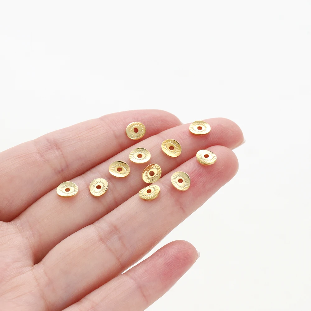 20-50pcs 5x6MM 14K 18K Gold Plated Brass Arcuate Embossing Spacer Beads Bracelets Beads Jewelry Making Supplies Diy Findings