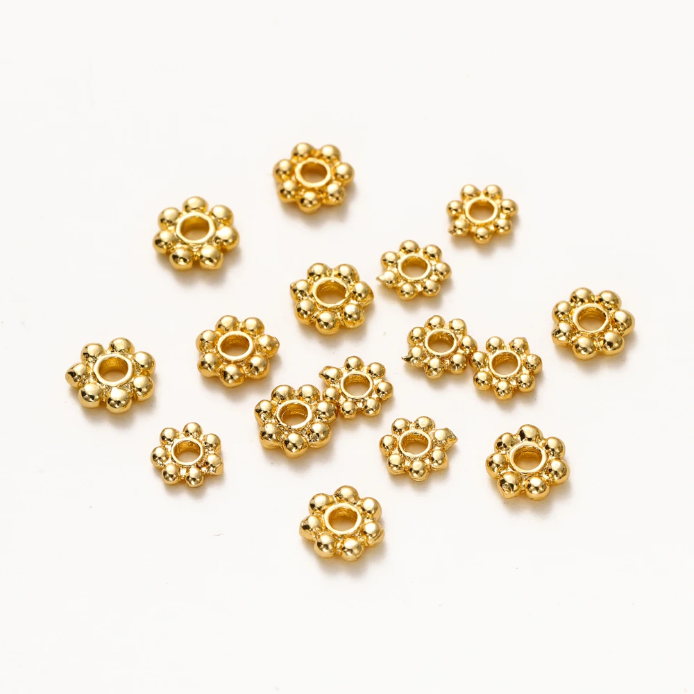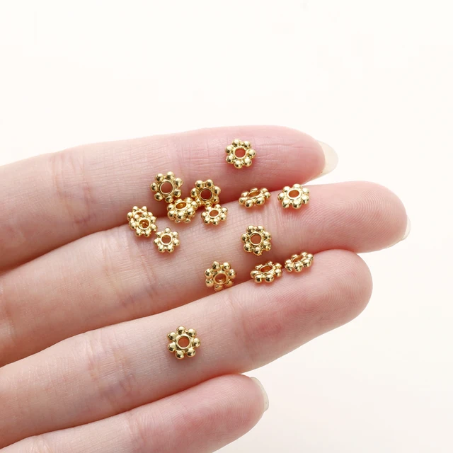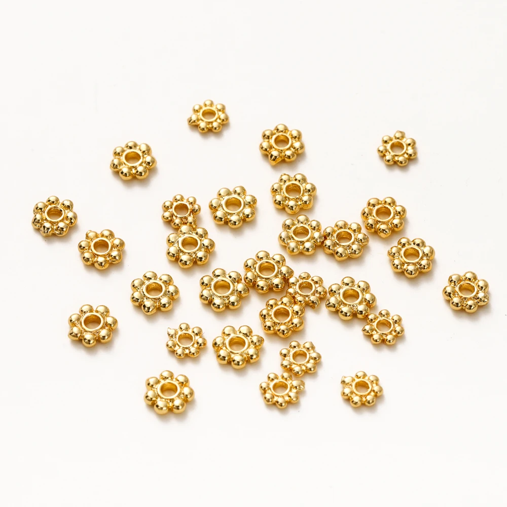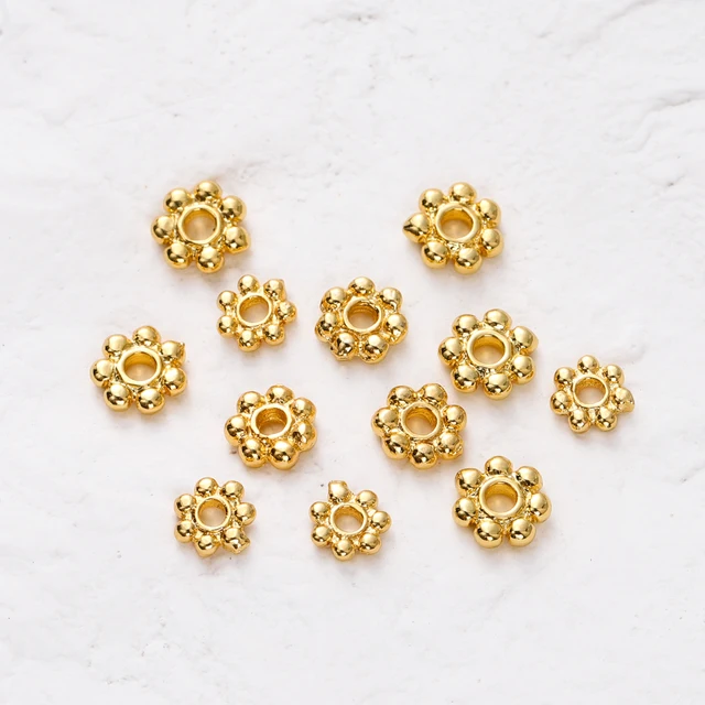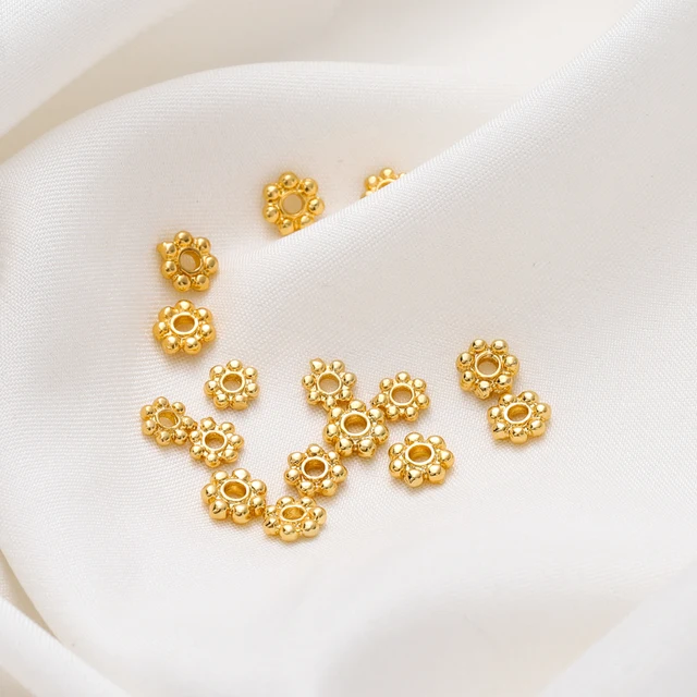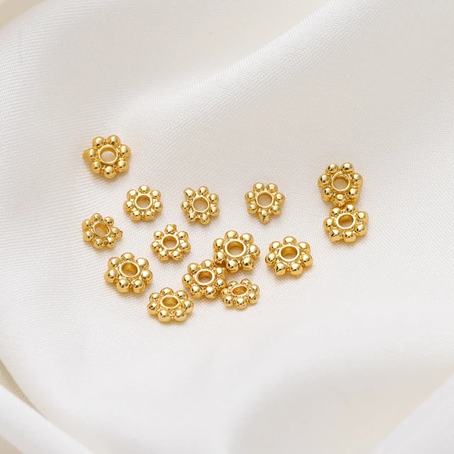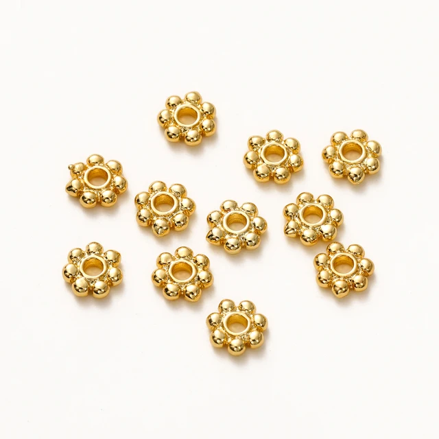 20pcs 14K 18K Gold Color Daisy Spacer Beads Mini Brass Spacer Beads Charms Pendants for DIY Bracelet Necklace Jewelry Making