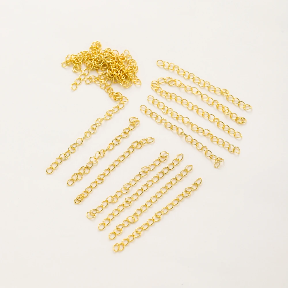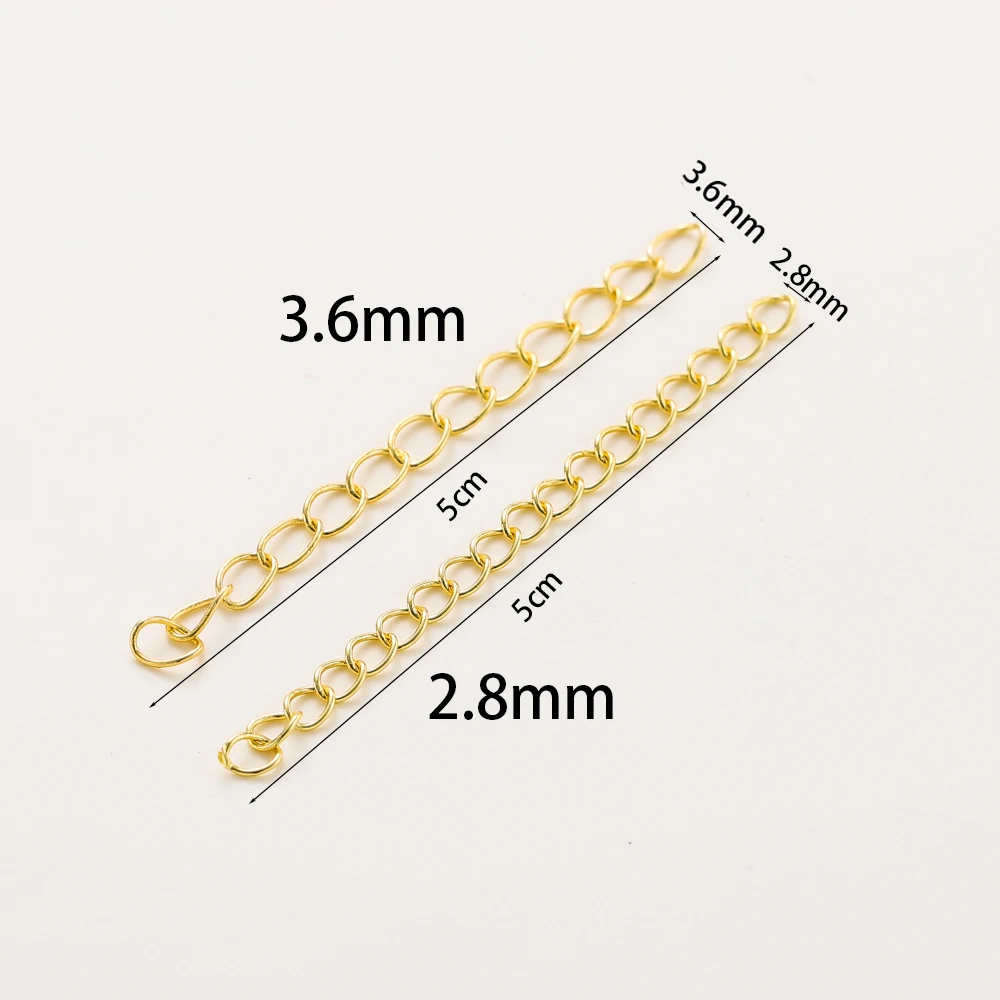 50pcs 14K Gold Plated Extended Tail Chain Necklace Lobster Clasps Connect Extender Chain For DIY Jewelry Charm Making Findings Material