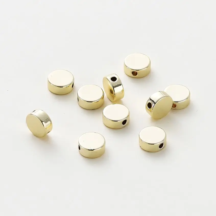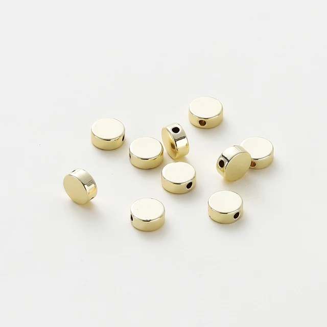 20pcs/bag 14K 18K Gold Color Plated Flat Round Necklace Spacer Beads Bracelet End Loose Beads For DIY Jewelry Making Supplies Material