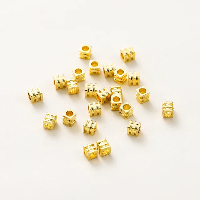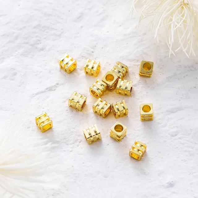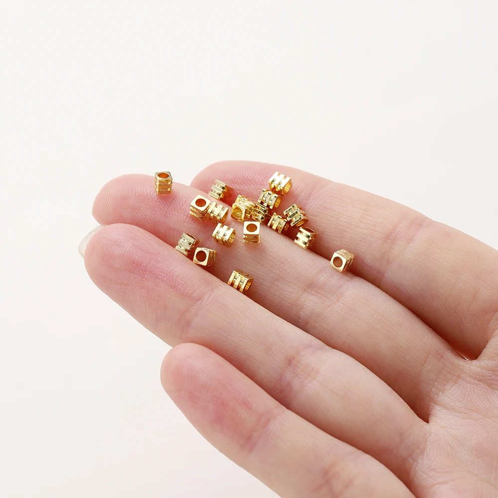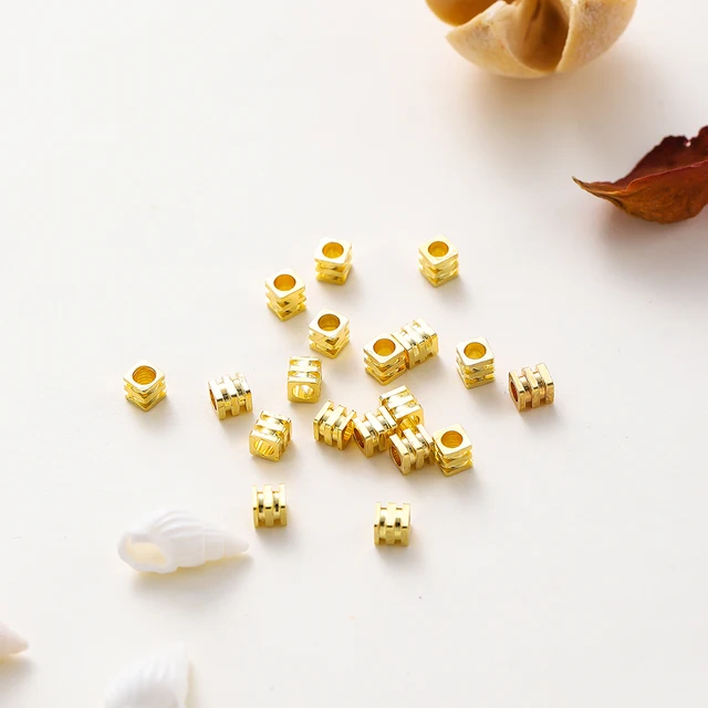 20pcs/lot 14K 18K Gold Square Loose SpacerBrass Beads Necklace Bracelet Beading Seeds For DIY Earing Charms Making Findinds