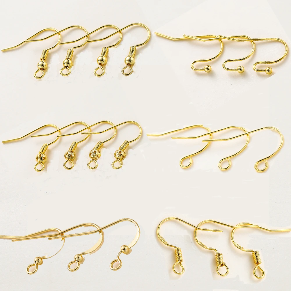 20pcs/lot 6 Styles 14K 18K Gold Plated Earring Wires With Ear Hook Earrings Clasp Findings Supplies For DIY Jewelry Making