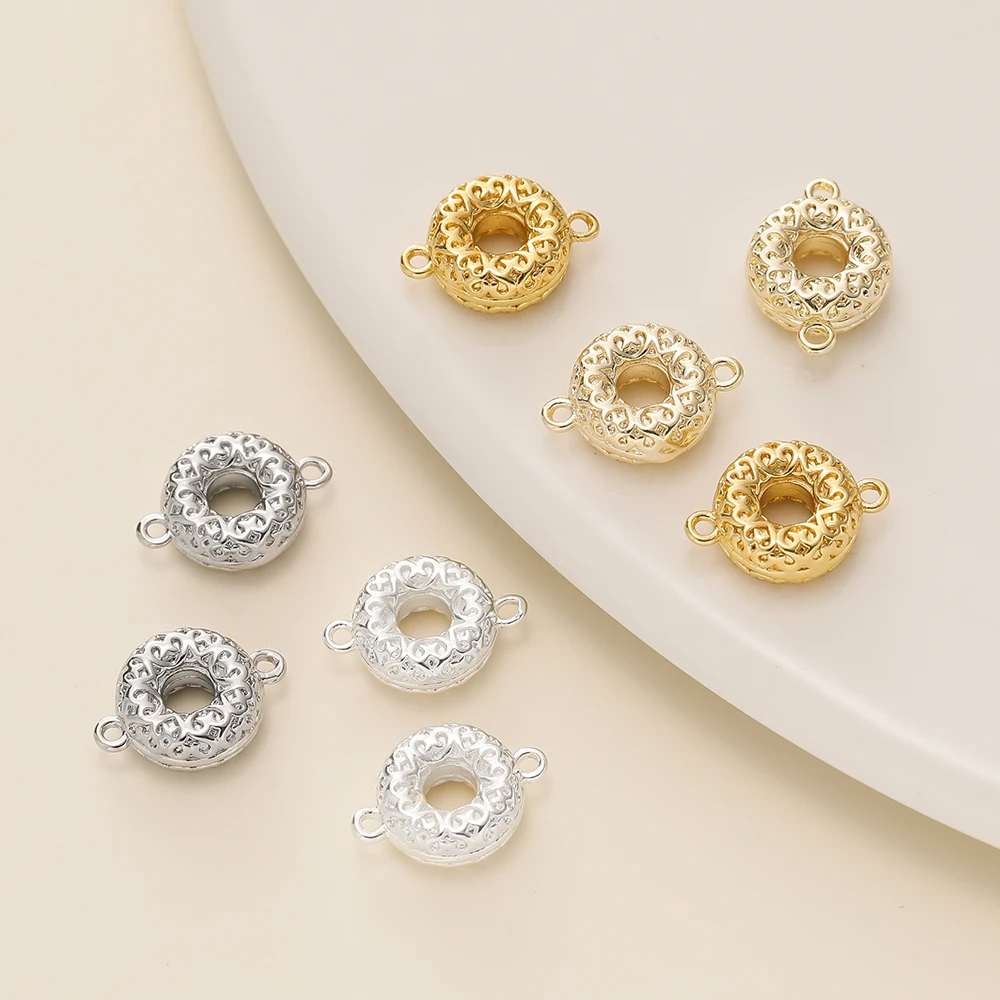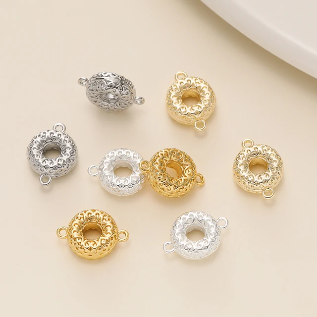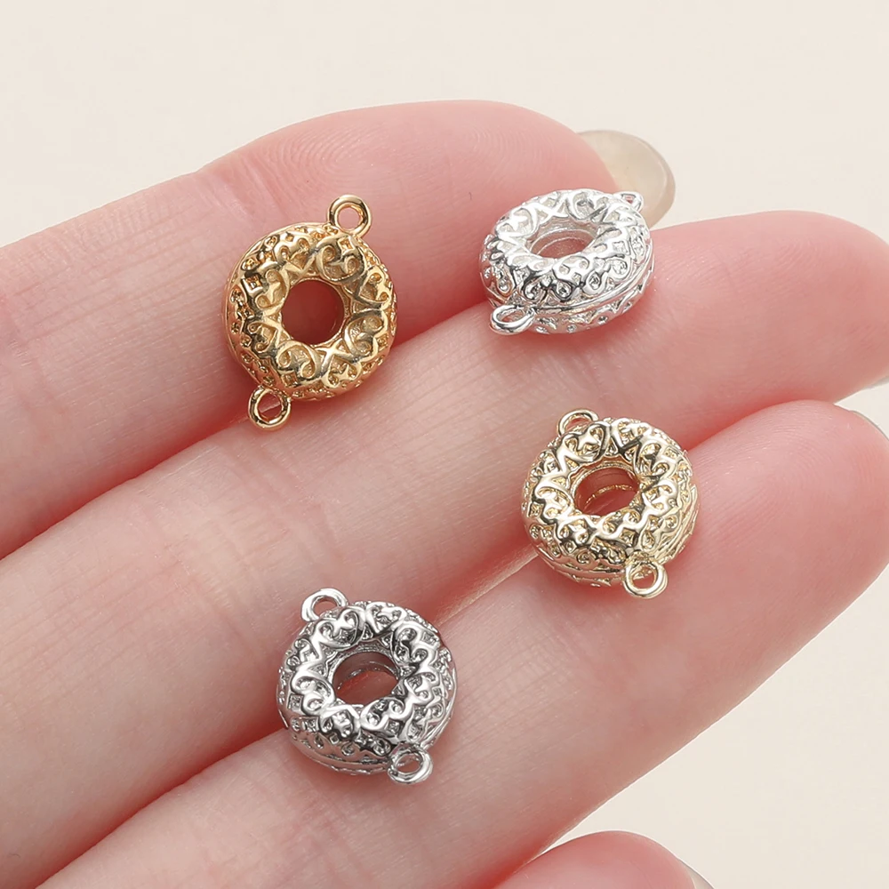 6Pcs/Pack 14/18K Gold Color Plated Double Ring Doughnut Pendants for Necklace Bracelets Jewelry Making Supplies Accessories