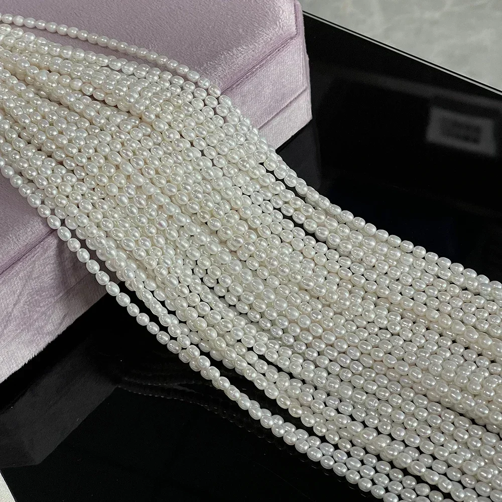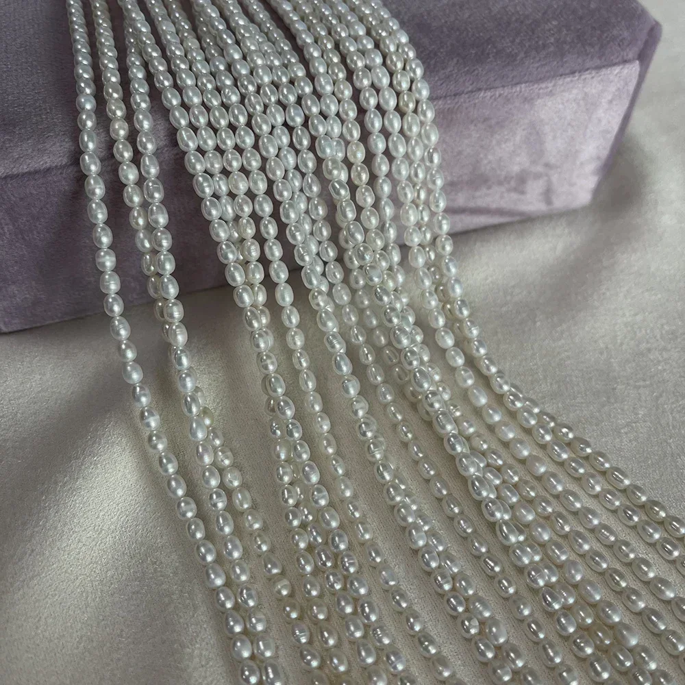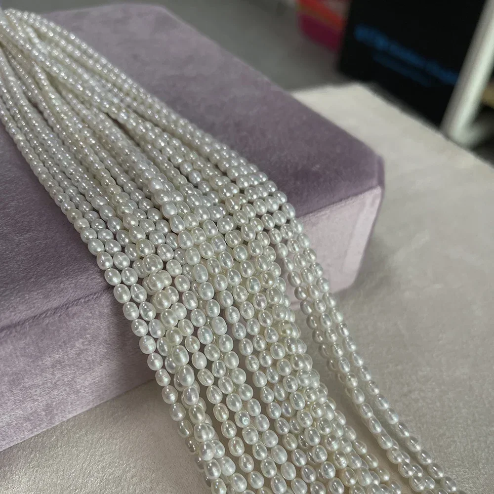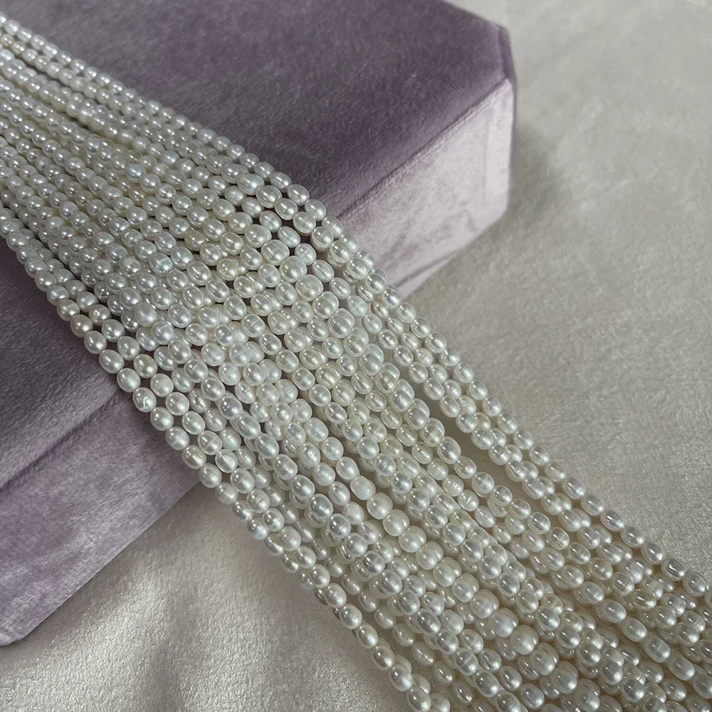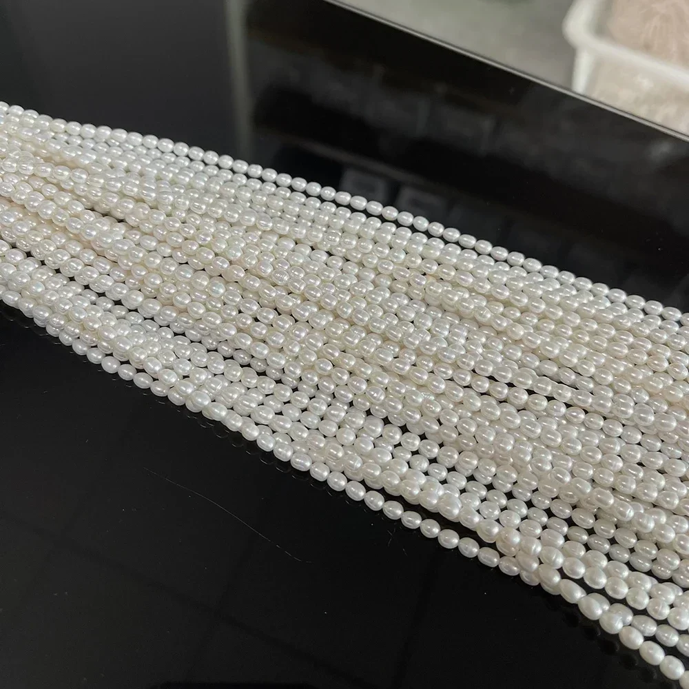 3-4mm AAA Natural Freshwater White Pearl Rice Shape Bead Christmas Gift for Women Jewelry Make DIY Necklace Bracelet Accessories