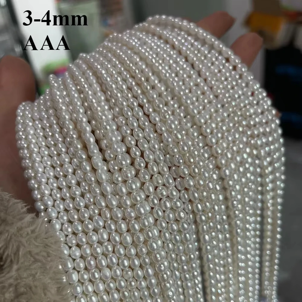 1. 3-4mm AAA Natural Freshwater White Pearl Rice Shape Bead Christmas Gifts for Women Jewelry Make DIY Necklace Bracelet Accessories