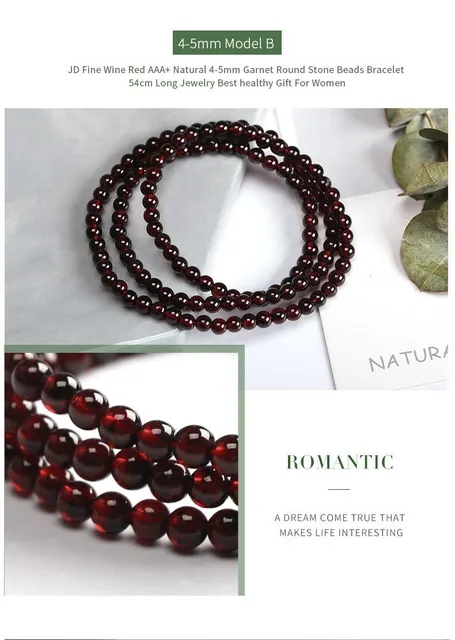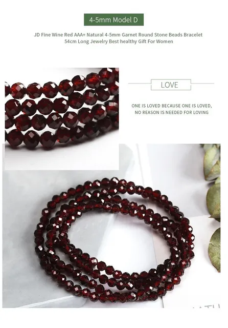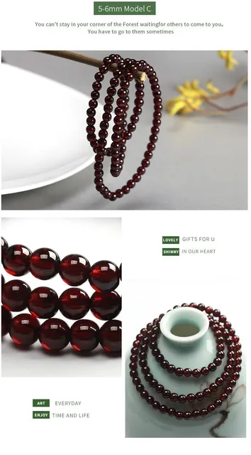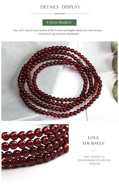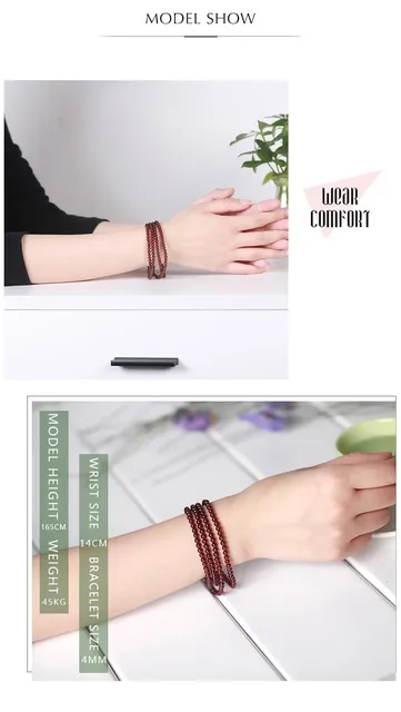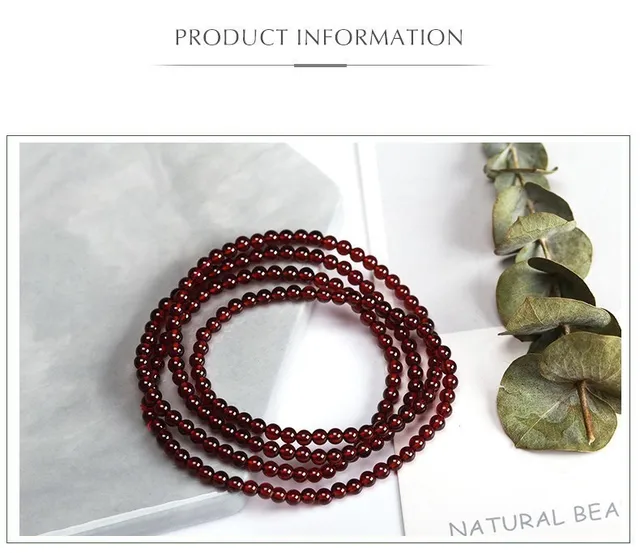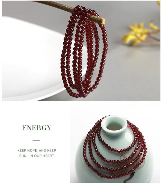 3-4mm Natural Wine Red Garnet Crystal Round Stone Beads Multi Circles Bracelets Women Elegant Healthy Jewelry Gift