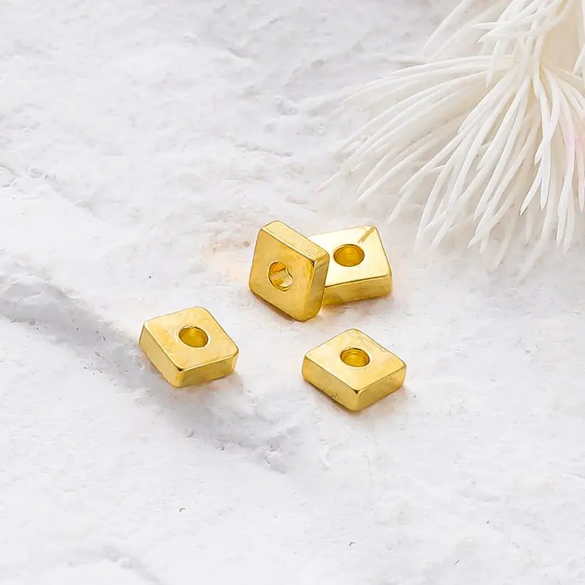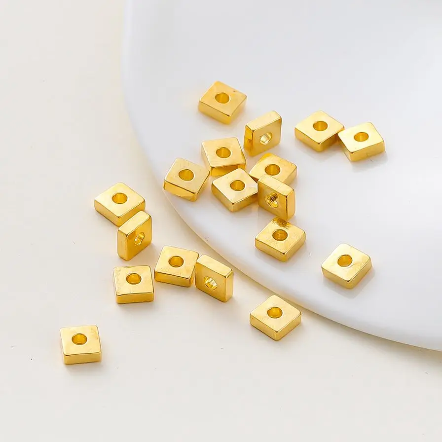 1 review for 30-100pcs/lot 14K 18K Gold Silver Plated Square Flat Loose Spacer Beads Bracelet Decorate Beading For DIY Jewelry Crafts Finding