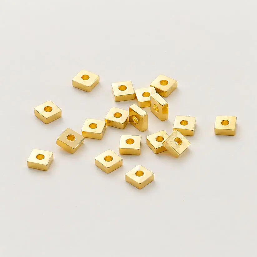 30-100pcs/lot 14K 18K Gold Silver Plated Square Flat Loose Spacer Beads Bracelet Decorate Beading For DIY Jewelry Crafts Finding