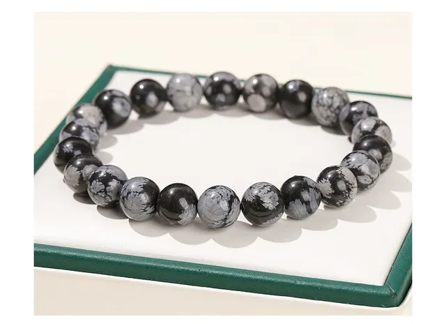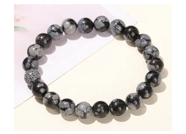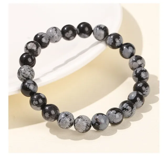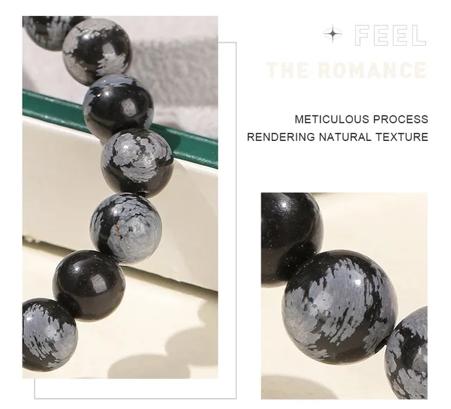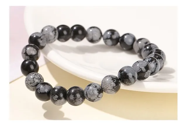 4-12MM Natural Stone Snowflake Stone Beads Elastic Bracelet Grey Black Color Smooth Round Beads Stretch Bracelet Jewelry