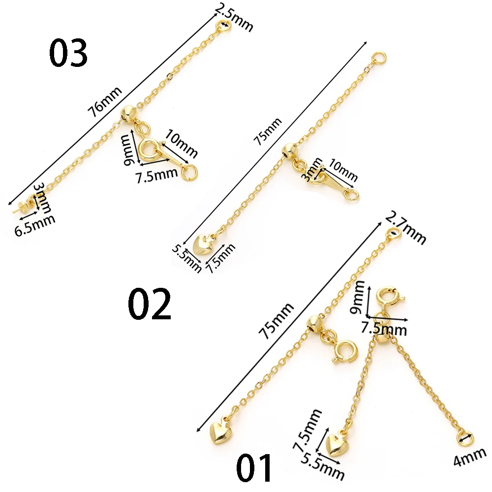 4/6Pcs 14/18K Gold Color Plated Brass Adjustable Clasps with Extend Chain for Bracelet Necklace DIY Jewelry Making Accessories