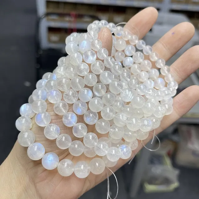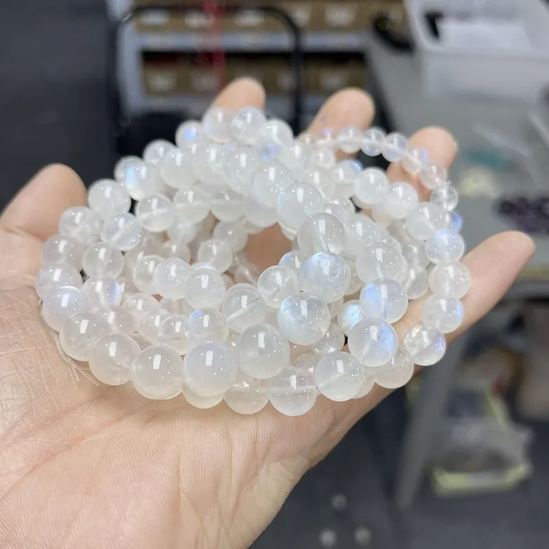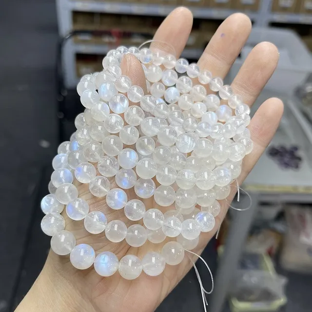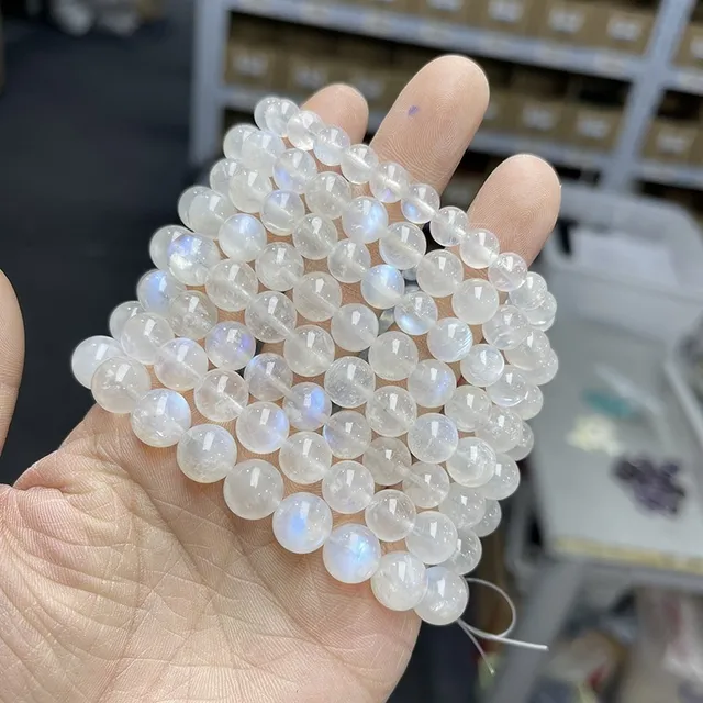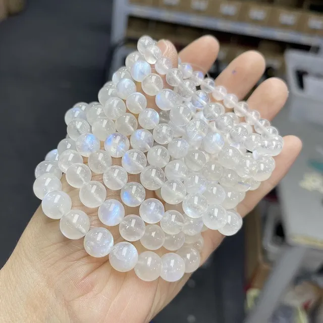 4A Natural Blue Moonstone Round Bead Strand Bracelets Women Men Charm Blue Flash Beads Luxury Energy Elastic Wrist Yoga Jewelry