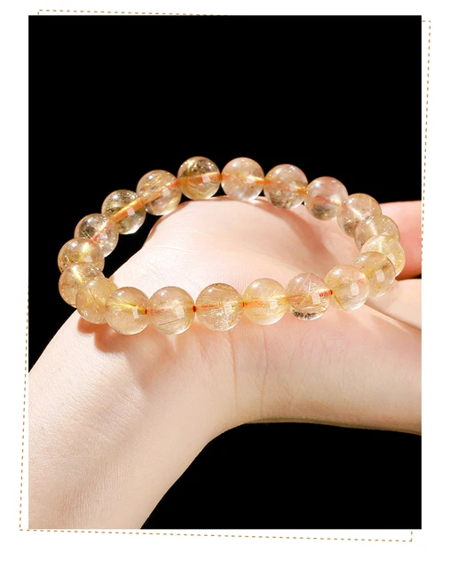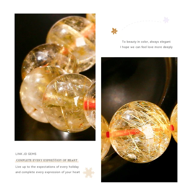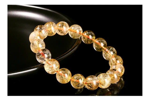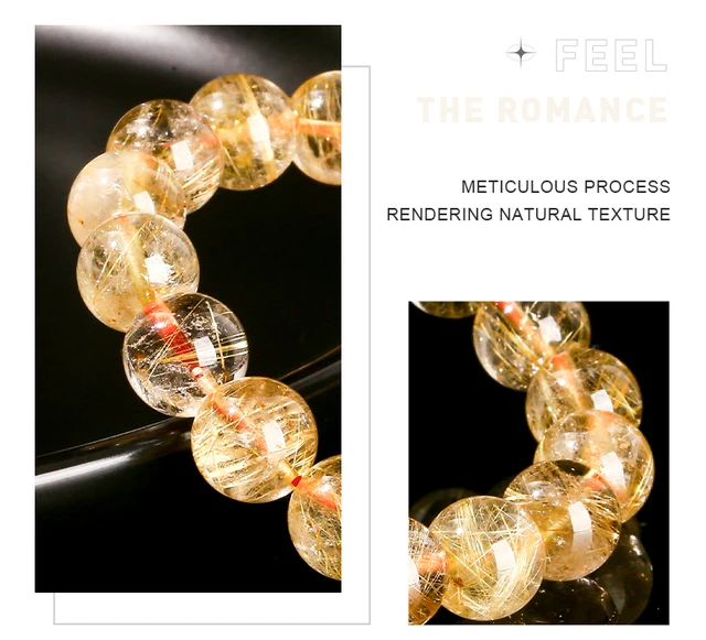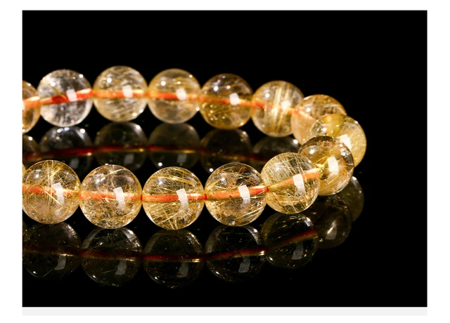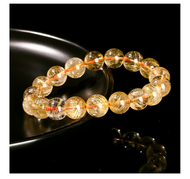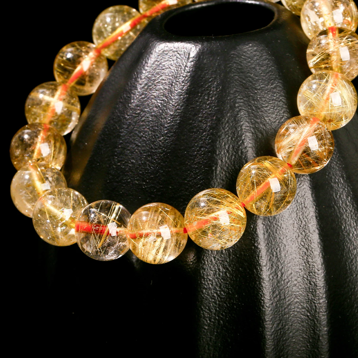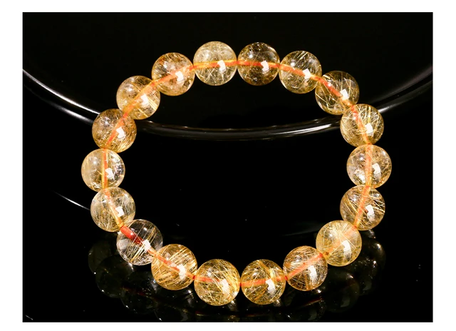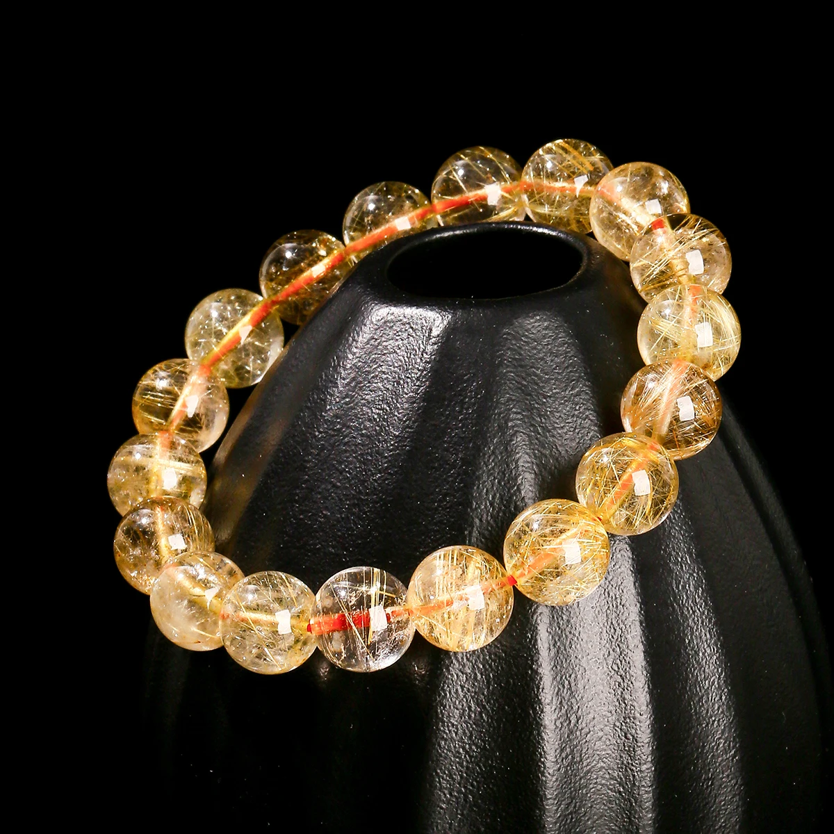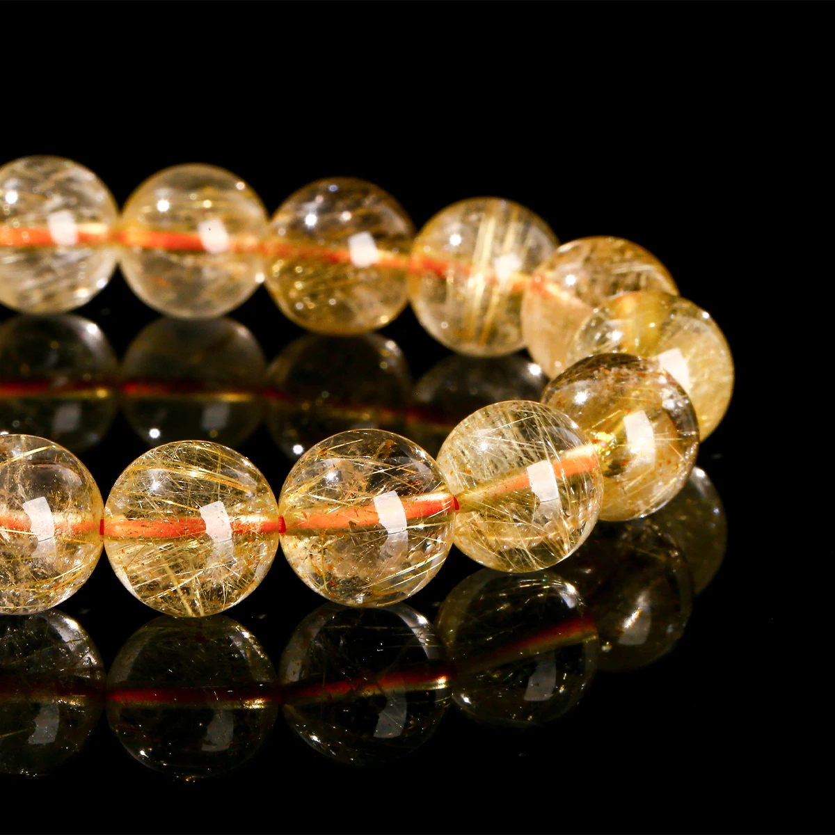 4A Quality Natural Ice Golden Rutilated Quartz Wealth Lucky Bead Bracelets Women Men Power Healing Stretch Hand Jewelry Gift
