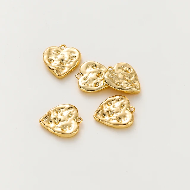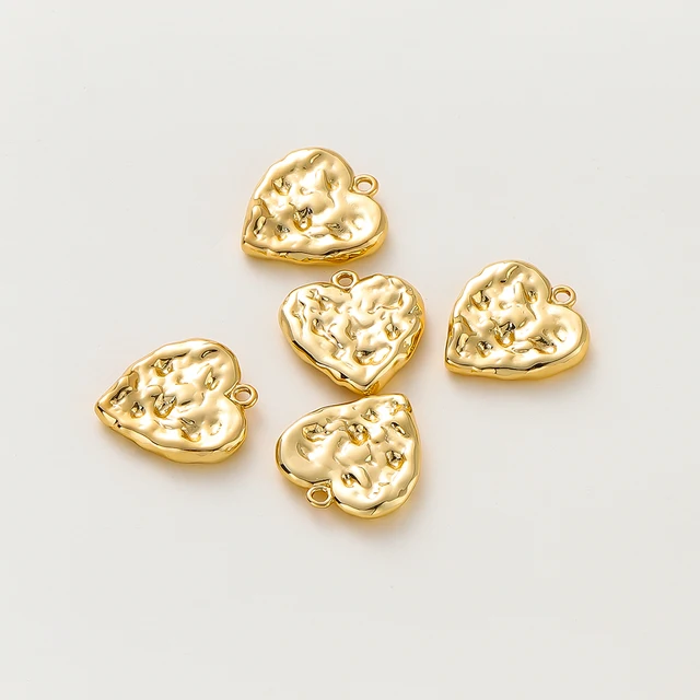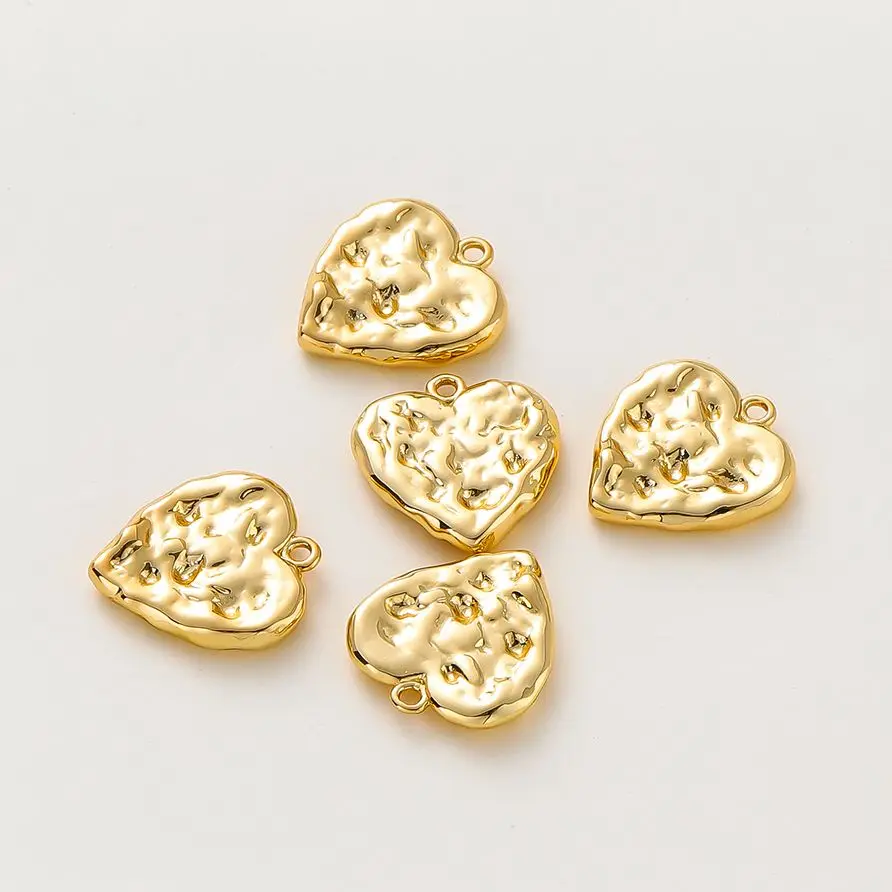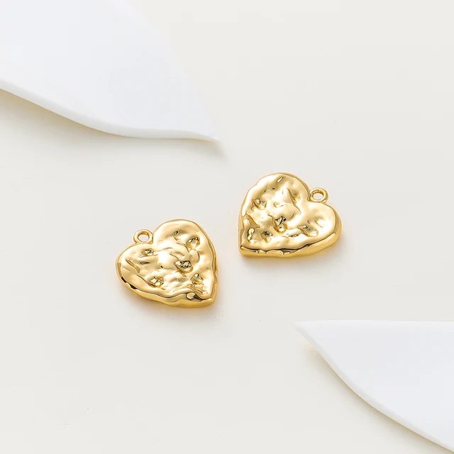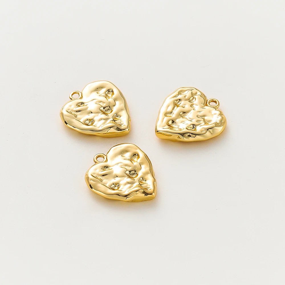 4pcs/lot 14K 18K Gold Color Dark Pattern Love Heart Metal Pendants Retro Earing Charms For DIY Jewelry Handmade Supplies