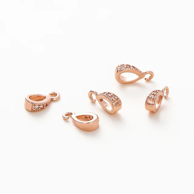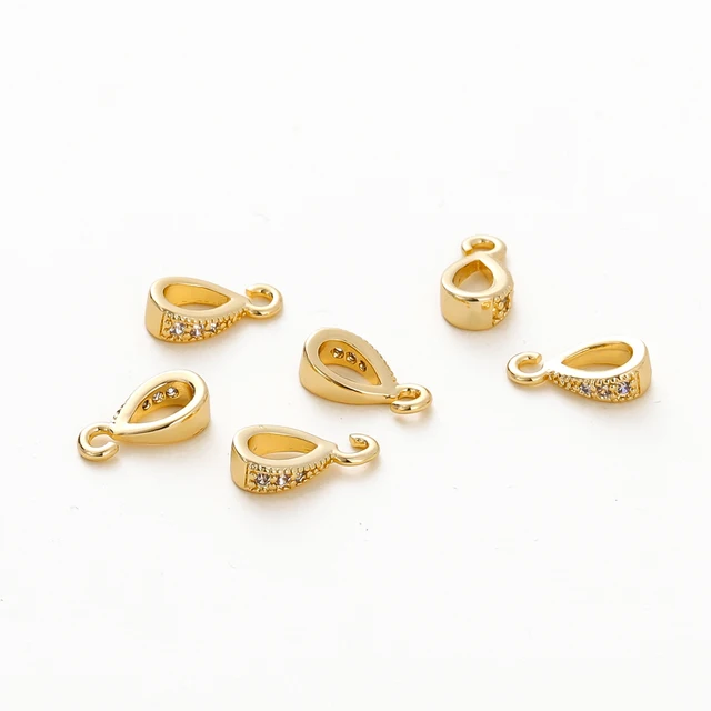 4PCS/lot 14K 18K Gold Color Plated Brass with Zircon Bale Pinch Clasp For Pendant Connector DIY Necklace Jewelry Making Findings