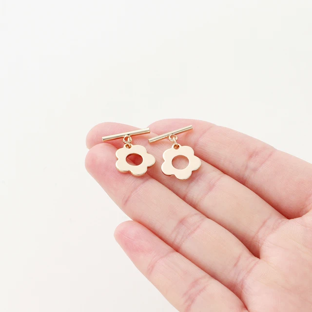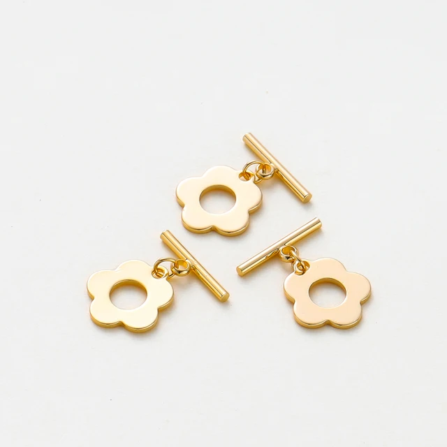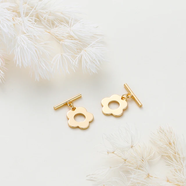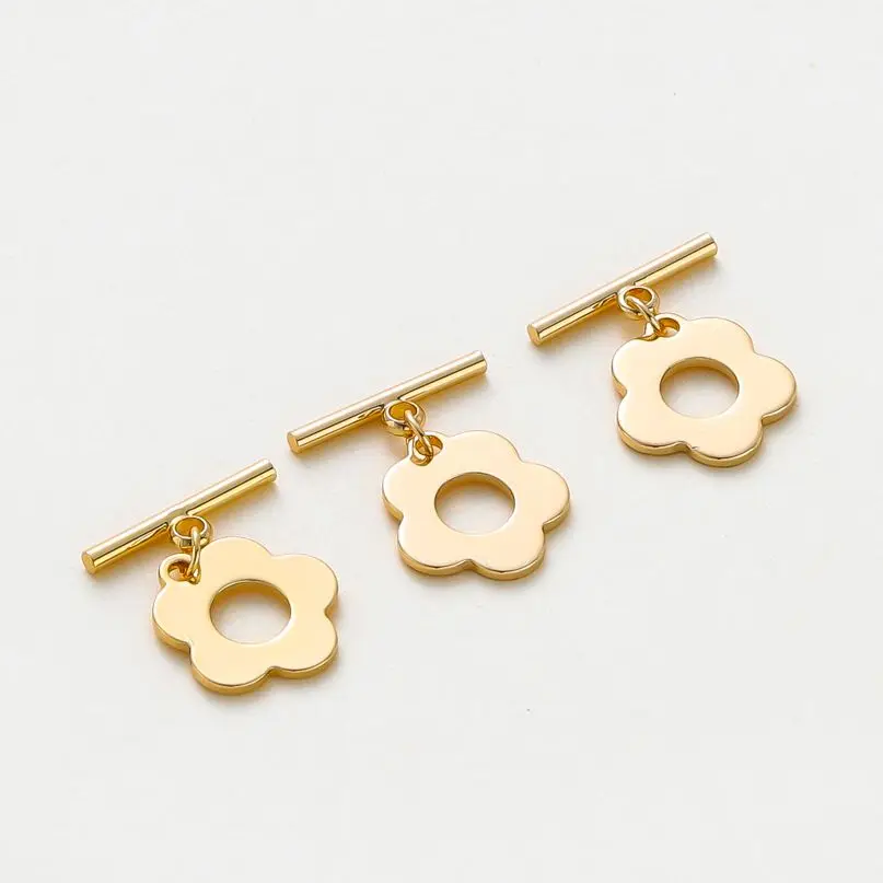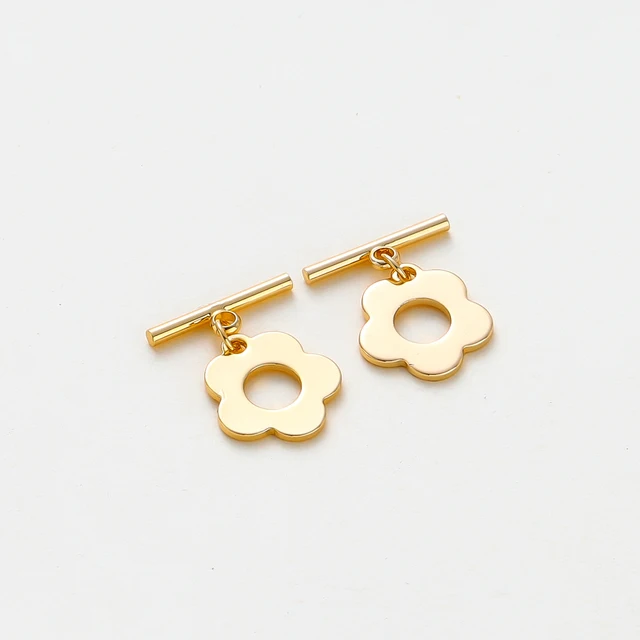 4pcs/lot 18K Gold Color Plated Flower Shape Brass OT Clasps Bracelet Necklace End Connectors Fitting DIY Jewelry Making Findings