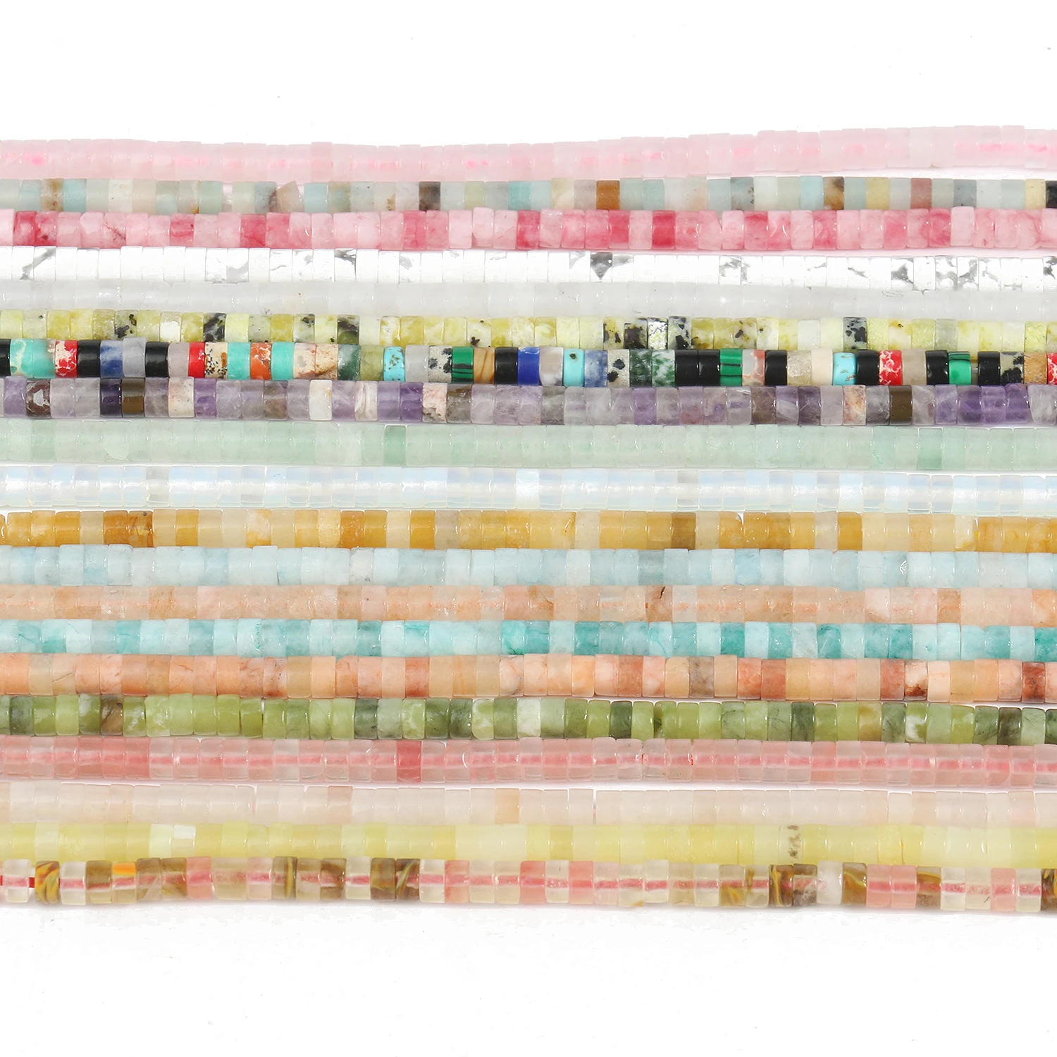 4x2mm Flat Round Disc Natural Stone Aventurines Chrysoprases Opal Amethysts Rose Quartzs Gasket Shape Beads For Jewelry Making