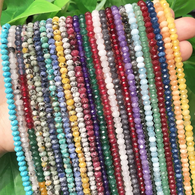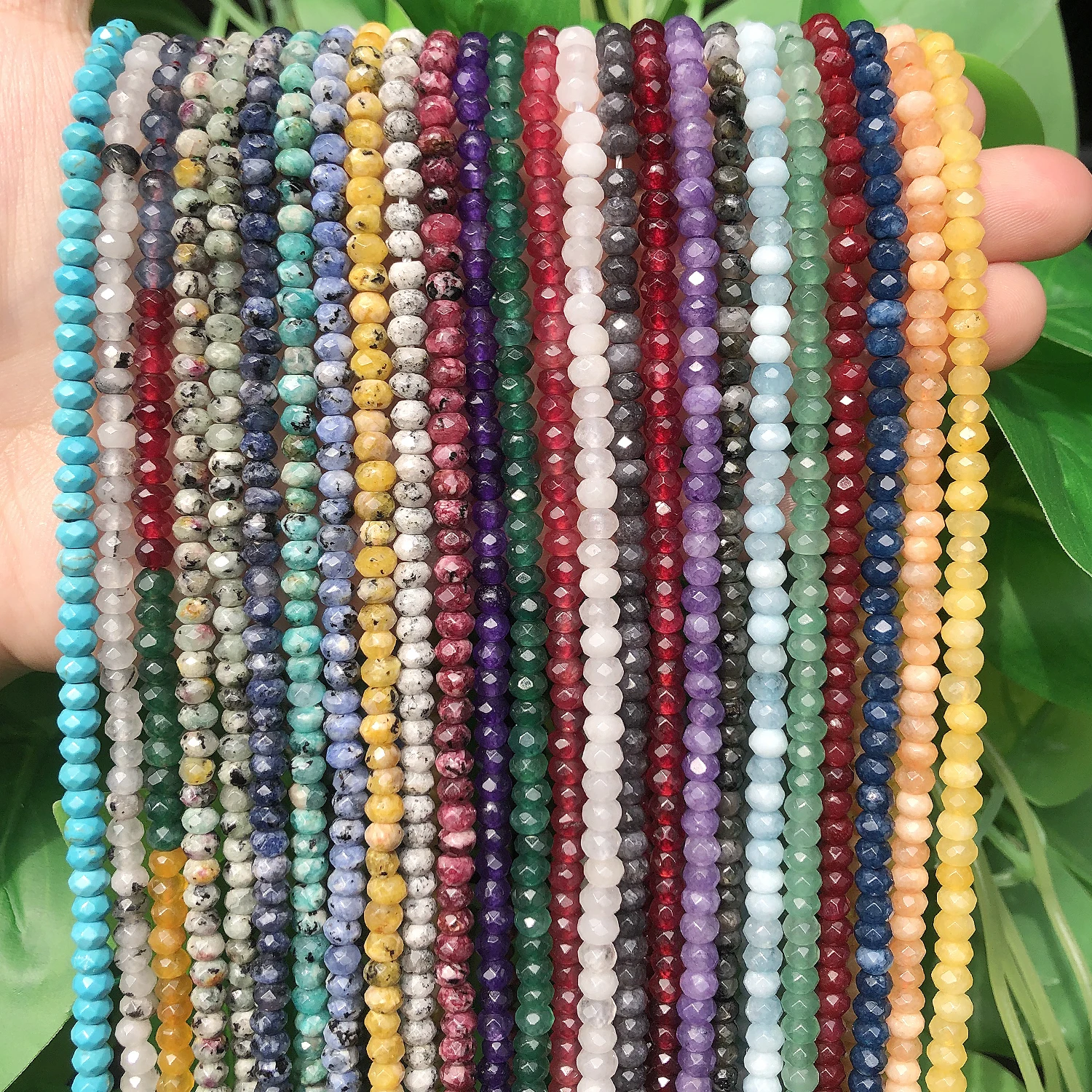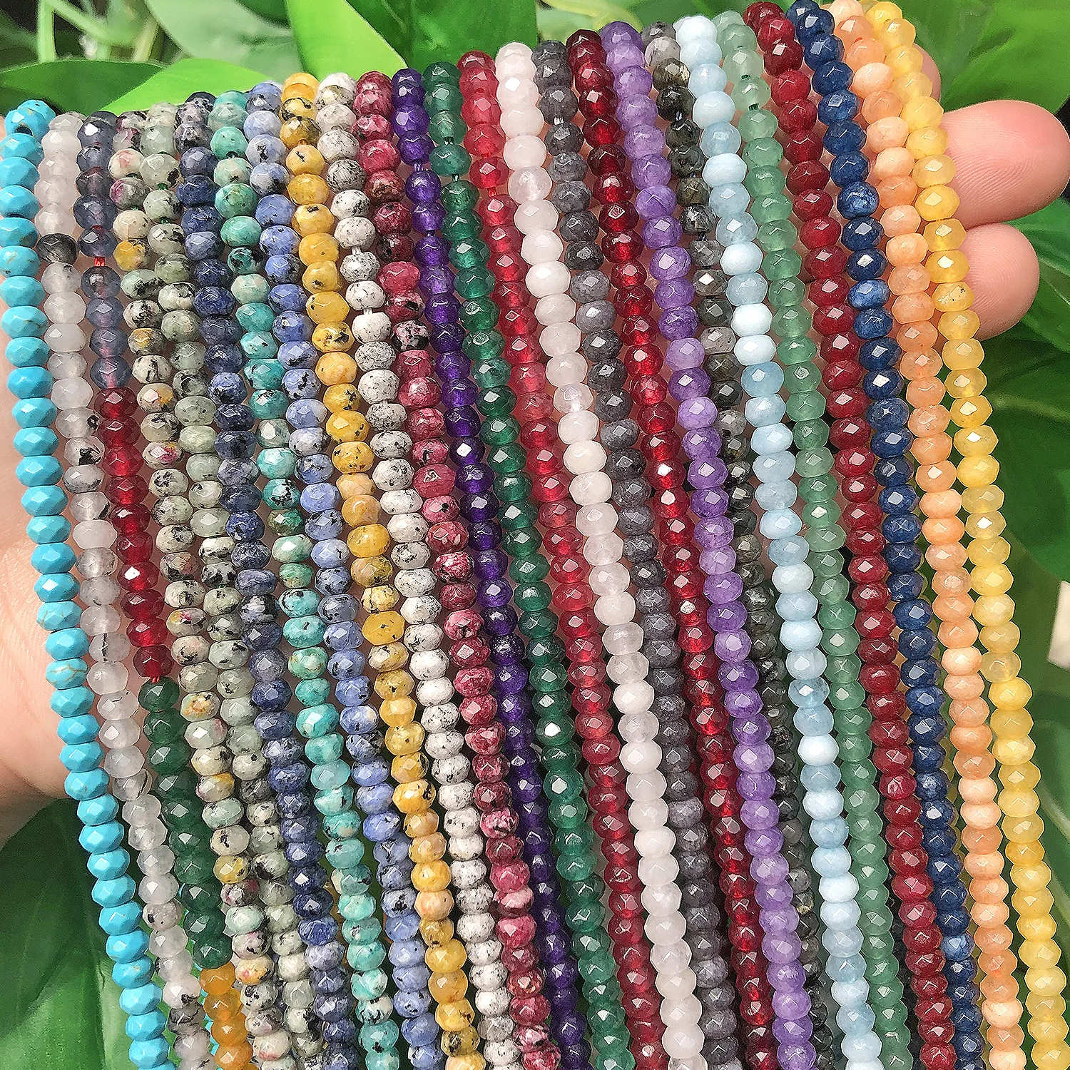 4x3mm Faceted Garnet Turquoise Chalcedony Indian Agate Amethyst Beads Flat Rondelle Shape Tiny Beads for Jewelry Making