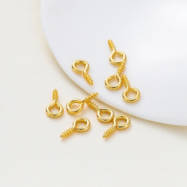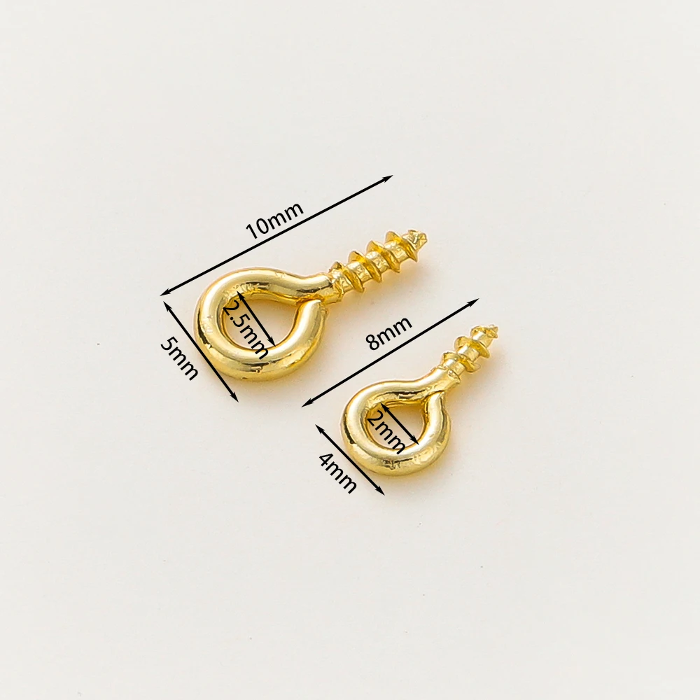 50pcs/lot 14K/18K Gold Plated Silver 8mm 10mm Screw Eye Pins Hooks Pendants Connectors Pins For Necklace Jewelry Accessories