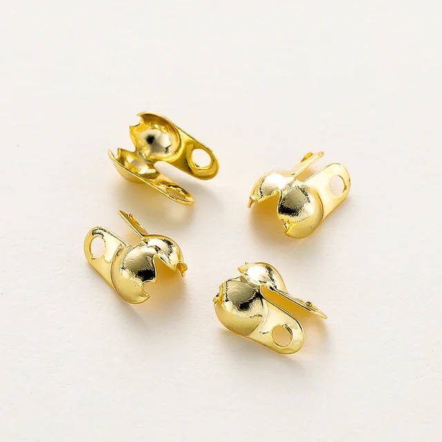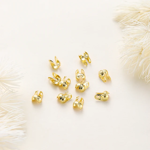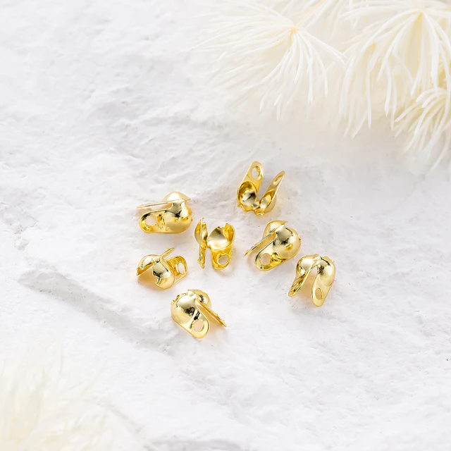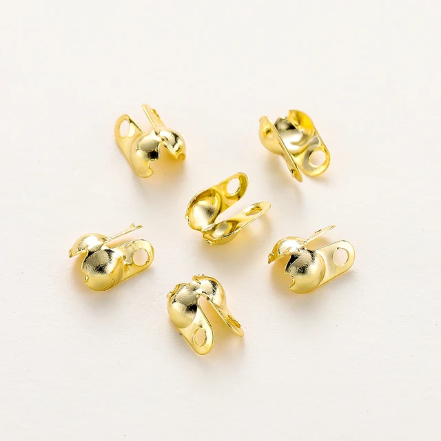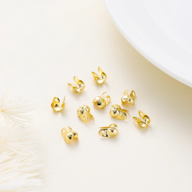 100pcs/lot 14K 18K Round Cord Side End Crimp Clasp Charms Necklace Positioning Closure Beads For DIY Jewelry Bracelet Accessories Material