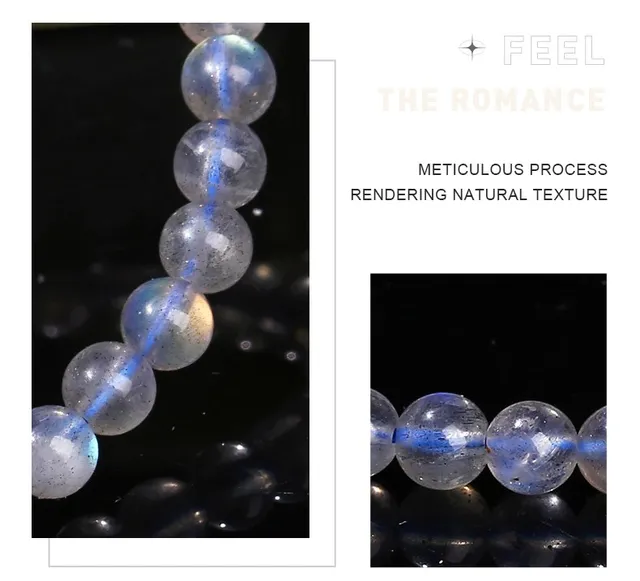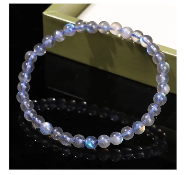 5A Genuine Natural Gray Moonstone Bead Charm Bracelets Women Men Fashion Blue Light Flash Labradorite Strand Energy Bracelet