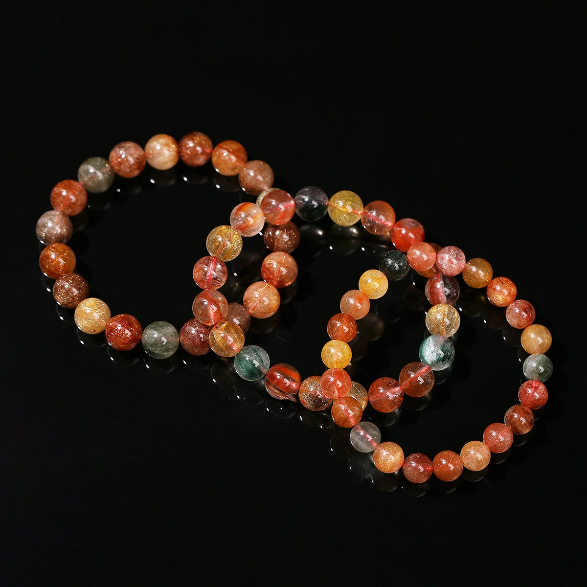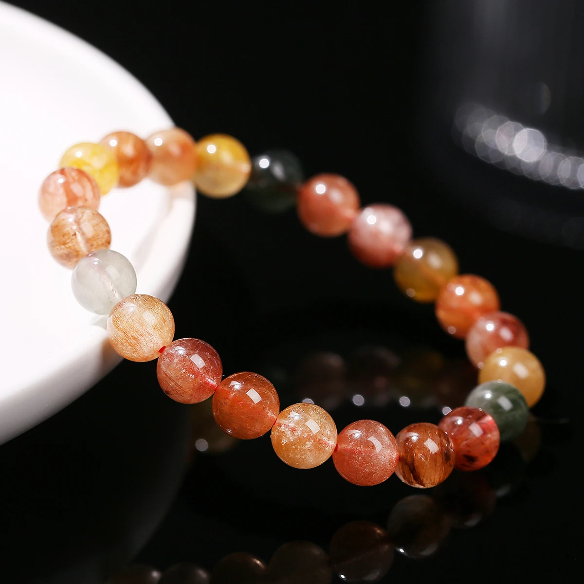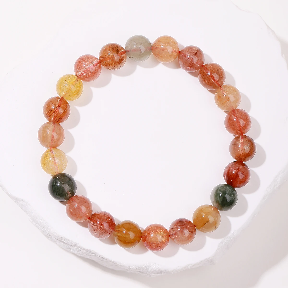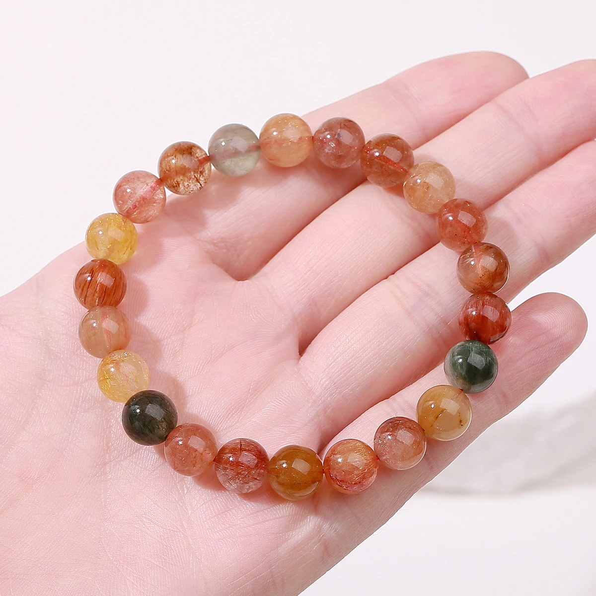 5A Natural Multicolor Rutilated Quartz Colorful Crystal Charm Bracelets Women Simple Round Bead Stretch Healing Yoga Jewelry