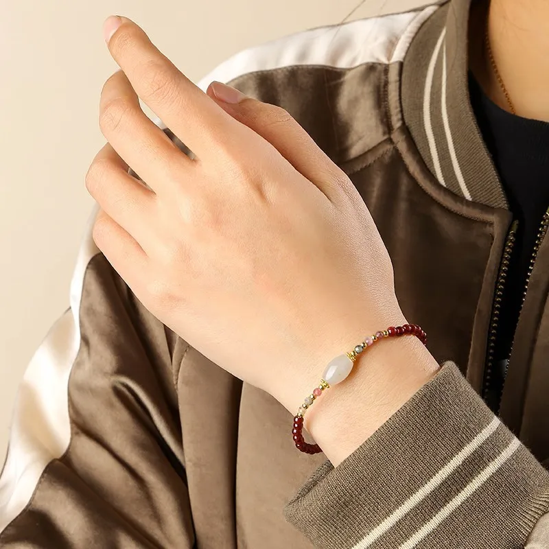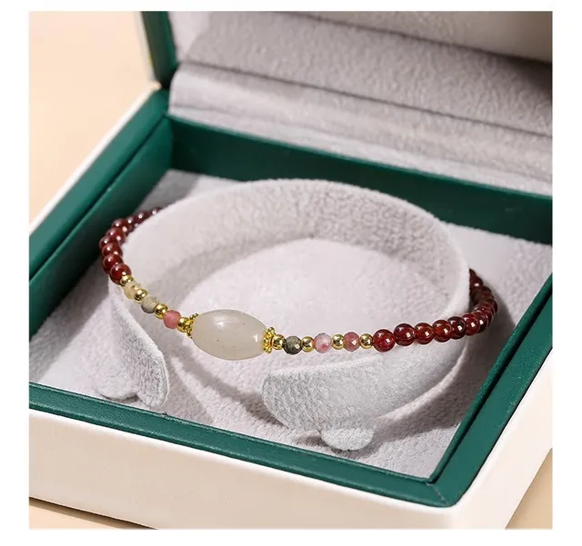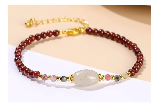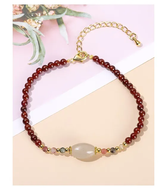 5A Quality Natural Red Garnet Bead Lucky Jade Beaded Bracelet Women Luxury Thin Adjustable Chain Bangles Female Jewelry Gifts