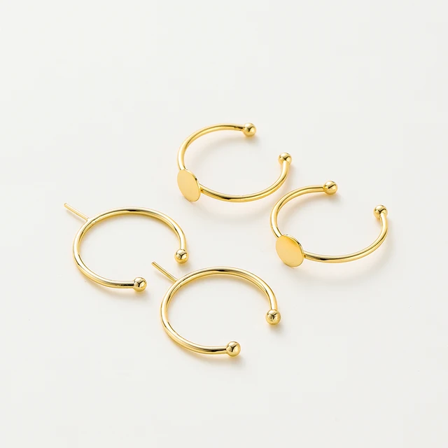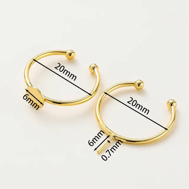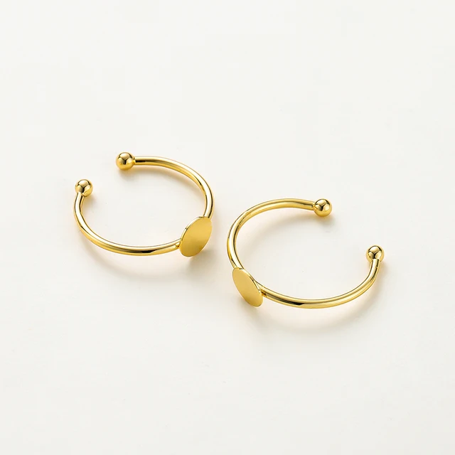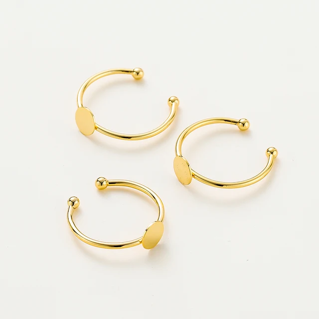 5pcs/lot 14K 18K Gold Plated 20mm Adjustable Blank Ring Settings With Pin Ring Base Fitting Jewelry Material Pearl Beads Making Component
