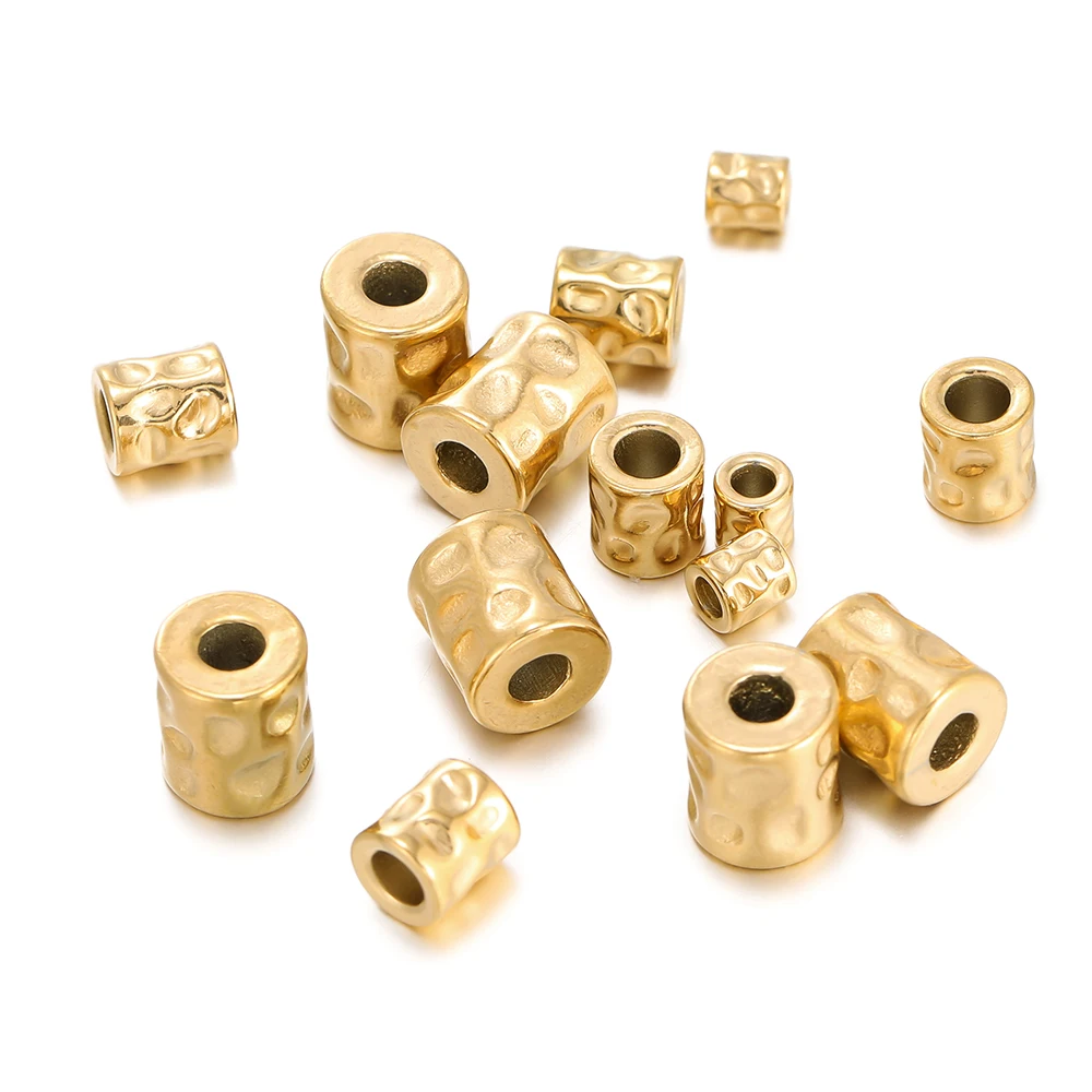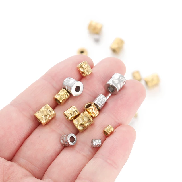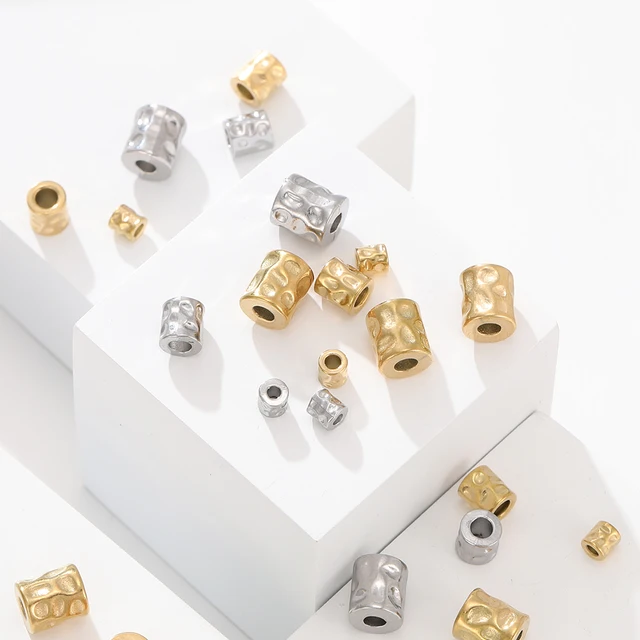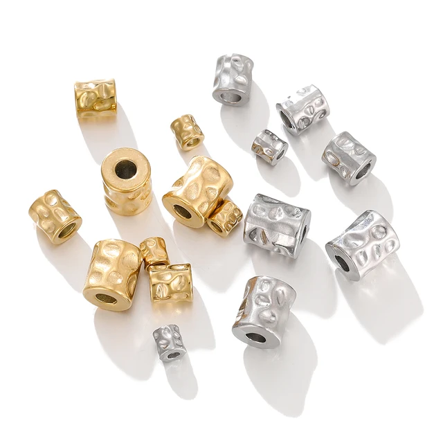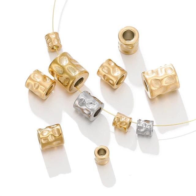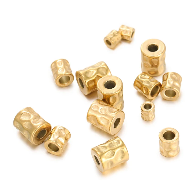 5Pcs/lot Stainless Steel Cylinder Tube Bead Gold Plated Spacer Dot Bead for Bracelet Friendship DIY Jewelry Making Necklace Seed Material Supplies