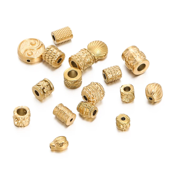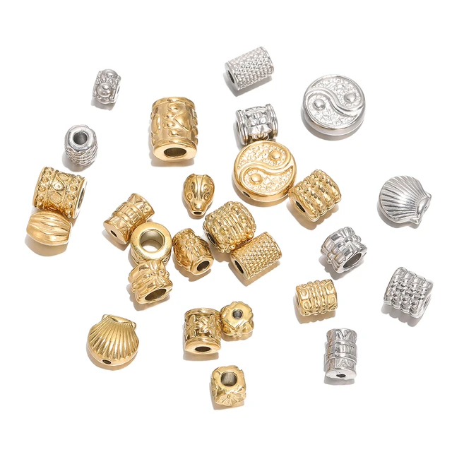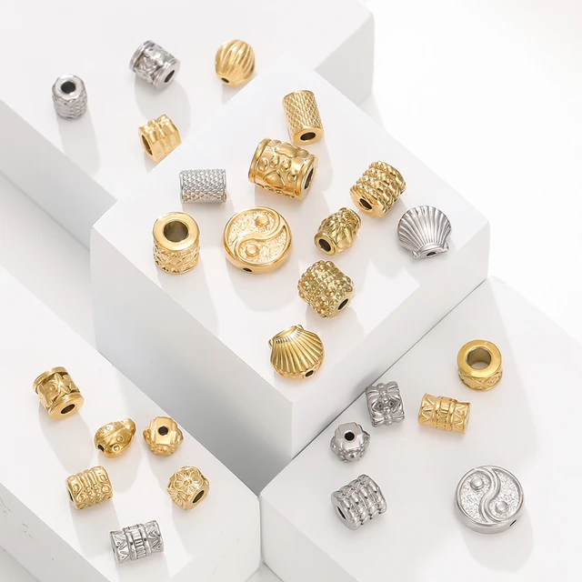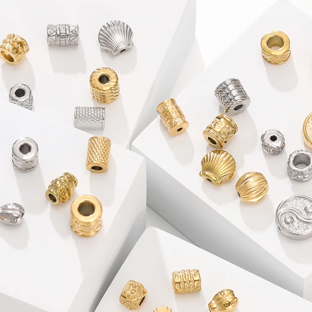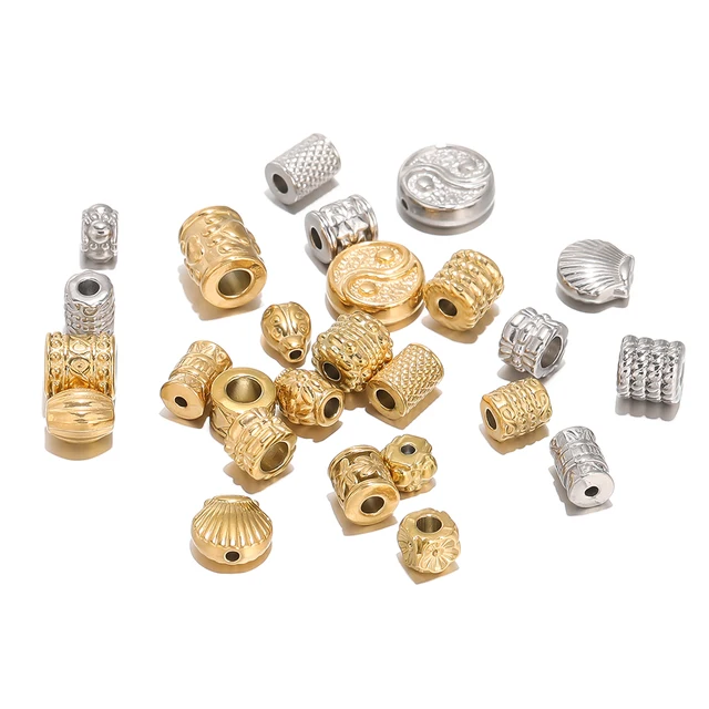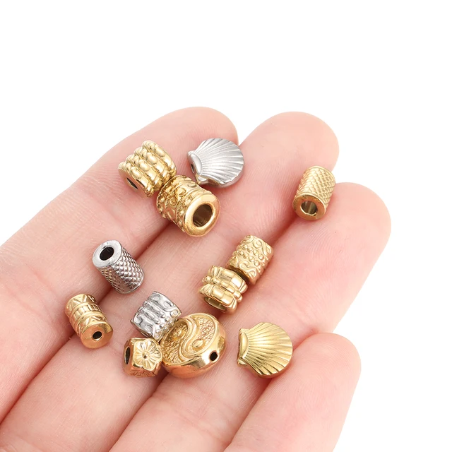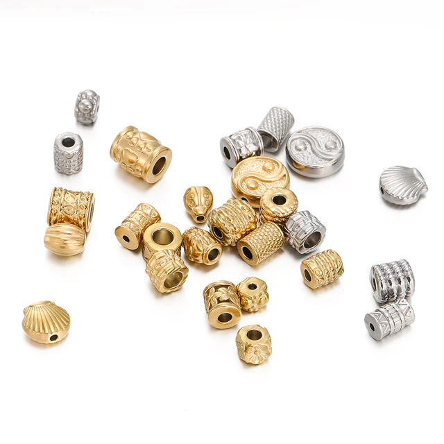 5pcs/lot Stainless Steel Spacer Beads Large Big Hole Beads Charm Pendants for Jewelry Making DIY Bracelet Necklace Supplies