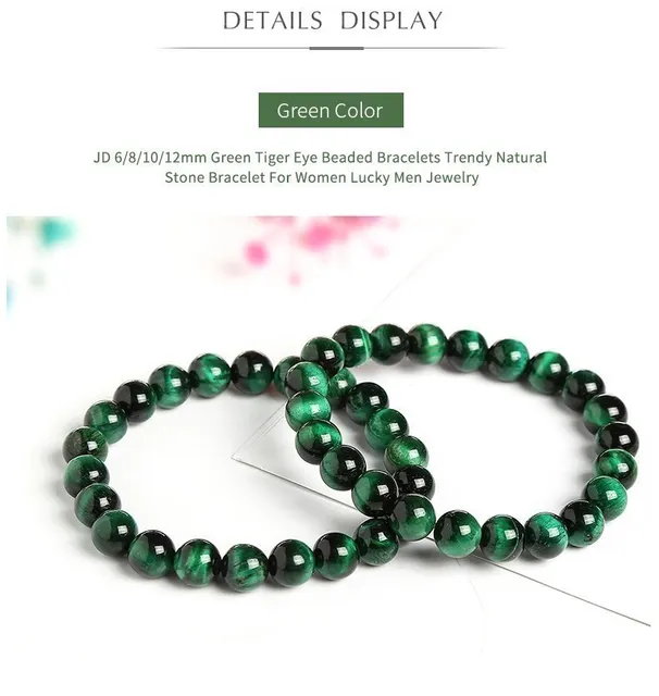 6/8/10/12mm Green Tiger Eye Beaded Bracelets Trendy Natural Stone Bracelet For Women Lucky Men Jewelry