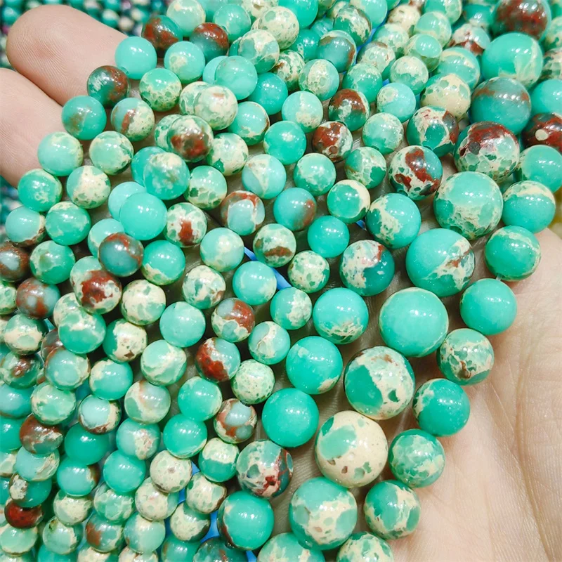 6 8 10mm Natural Stone Green Snakeskin Jaspers Bead ShouShan Stone Round Loose Beads For Jewelry Making DIY Bracelet Accessories